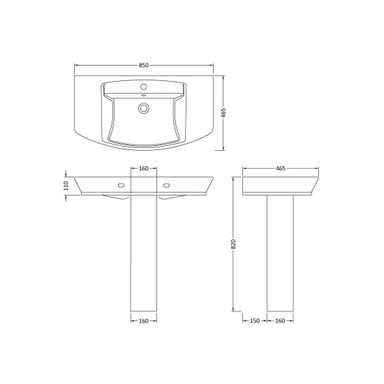 Nuie Lux Lulworth 850mm Pedestal Basin