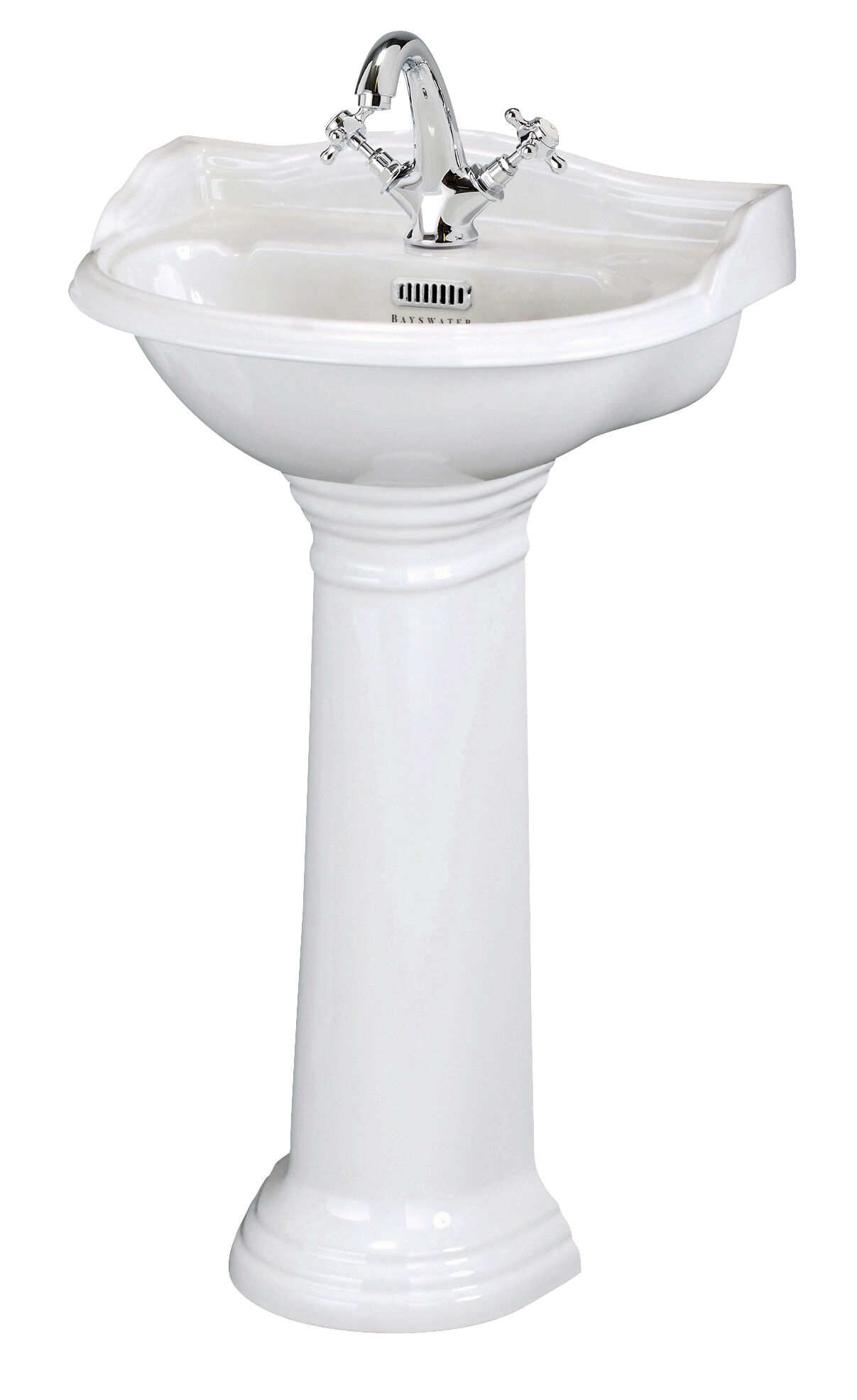 Bayswater Porchester 500mm Basin 1TH, Including Pedestal - White
