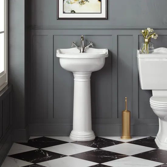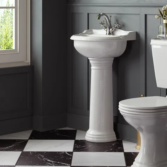 Add rounded lines and elegance to your traditional bathroom with this classic basin and pedestal.