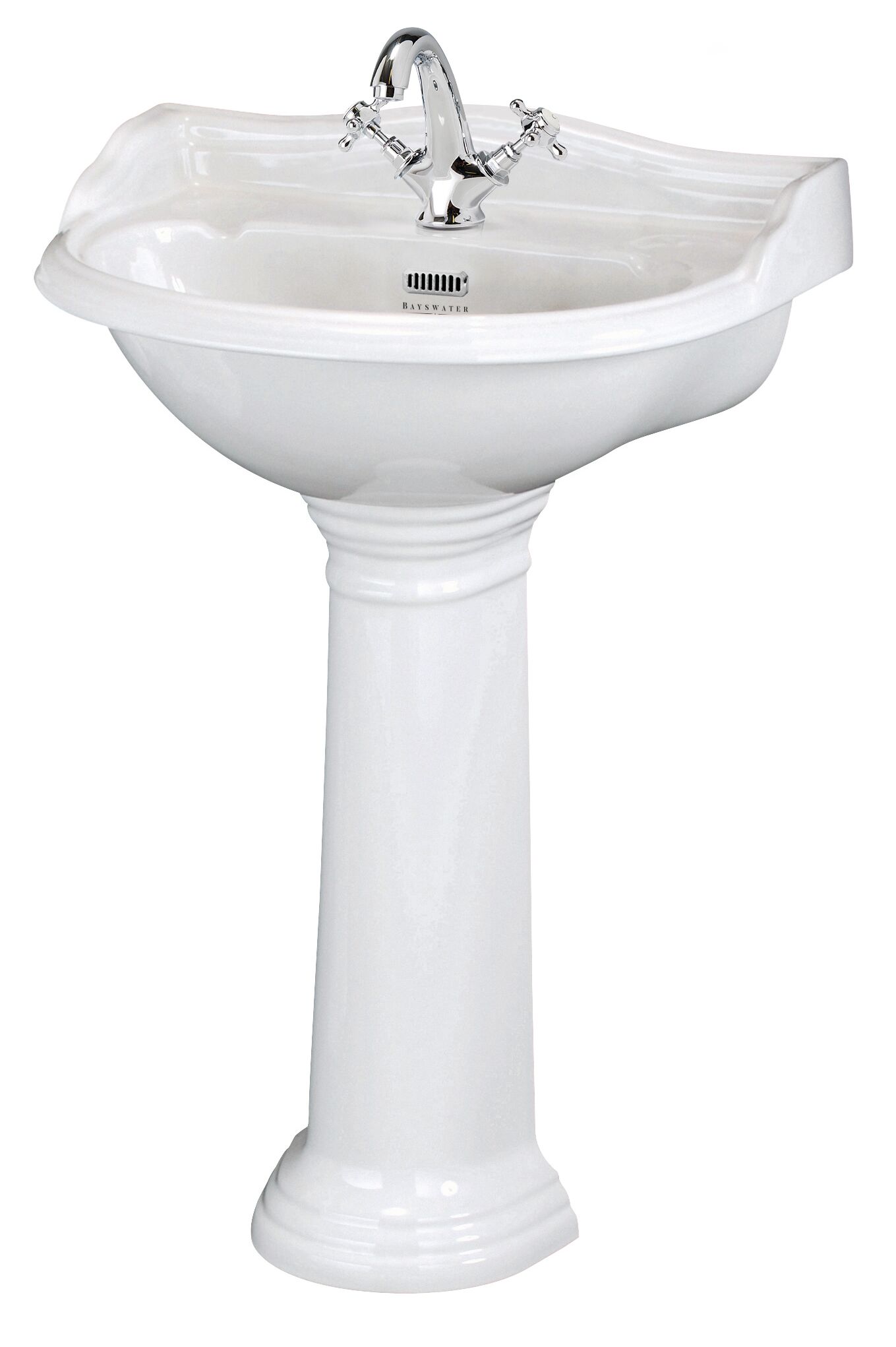 Bayswater Porchester 600mm Basin 1TH, Including Pedestal - White