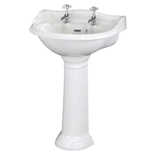 Bayswater Porchester 600mm Basin 2TH, Including Pedestal - White