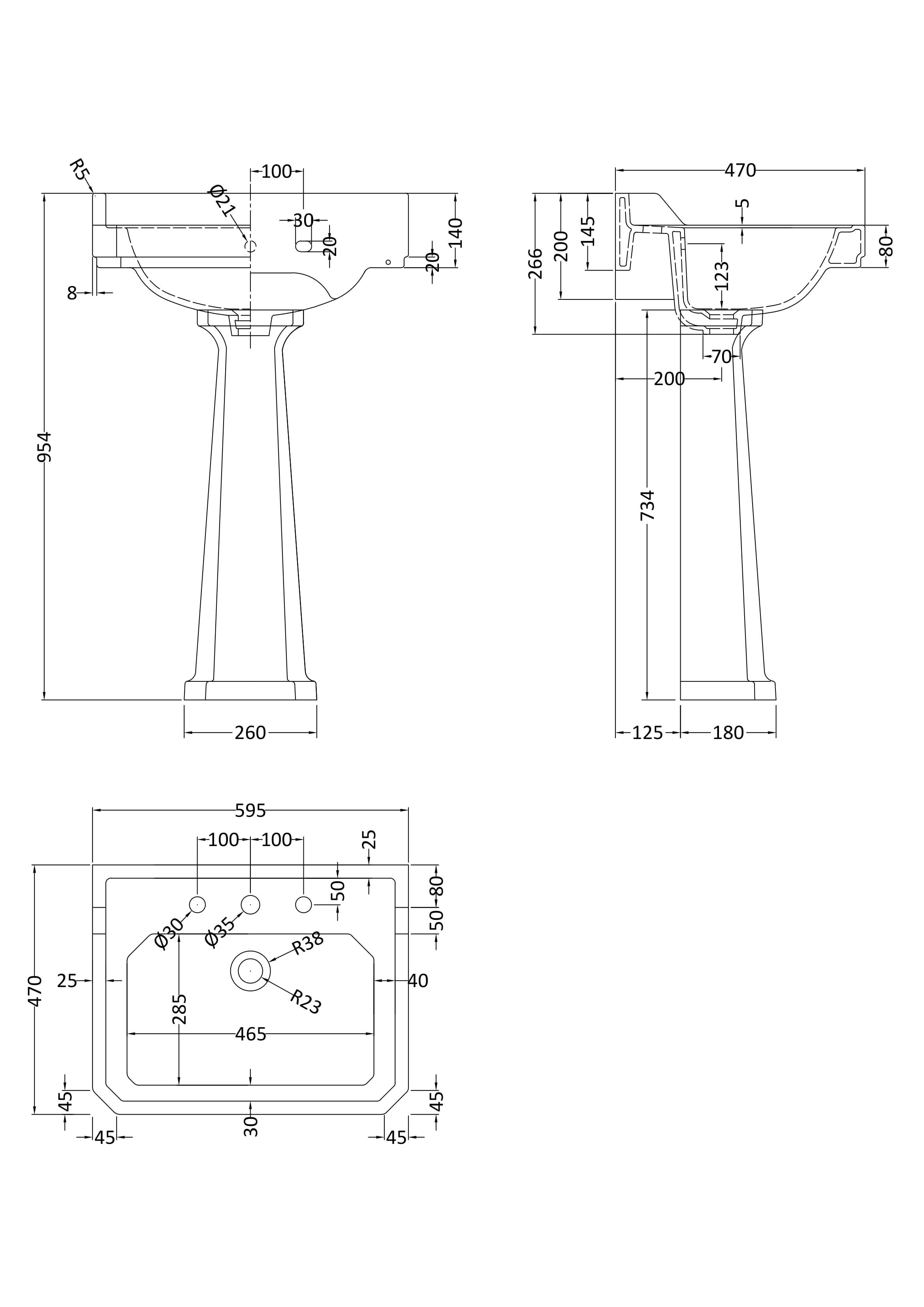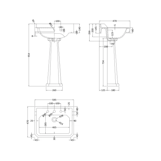 Old London Richmond 600mm 3 Tap Hole Basin & Comfort Height Pedestal