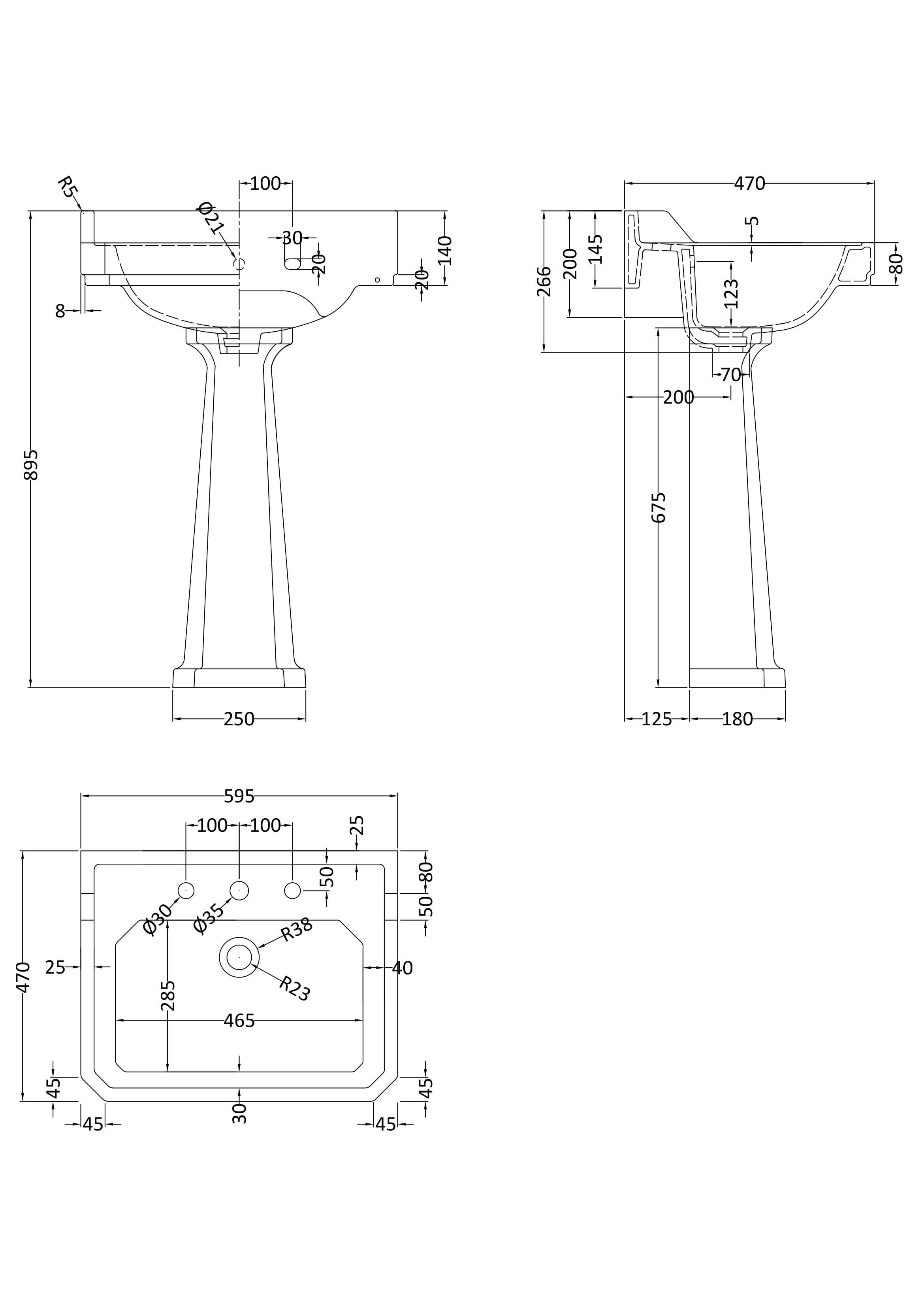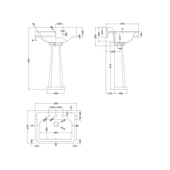 Old London Richmond 600mm Basin & Pedestal 3 Tap Hole