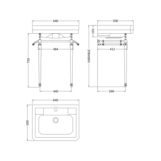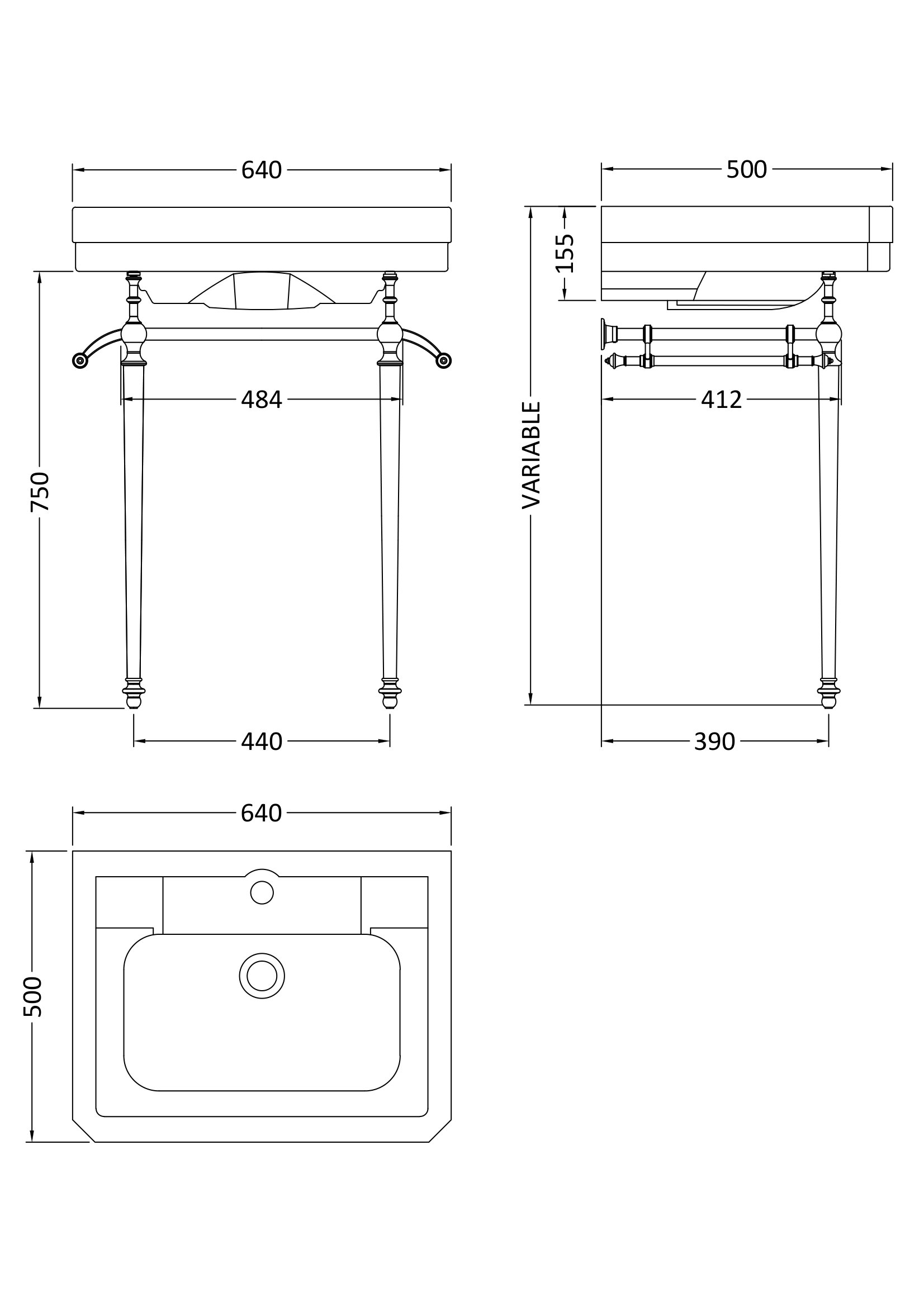 BC Designs Victrion 640mm Basin & Ornate Stand