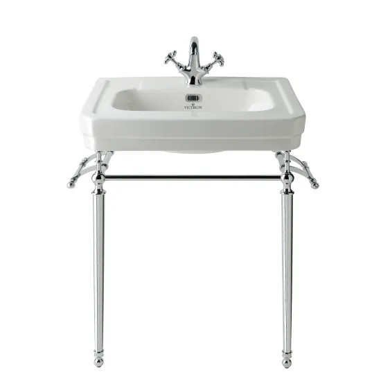 BC Designs Victrion 640mm Basin & Ornate Stand 1TH - White