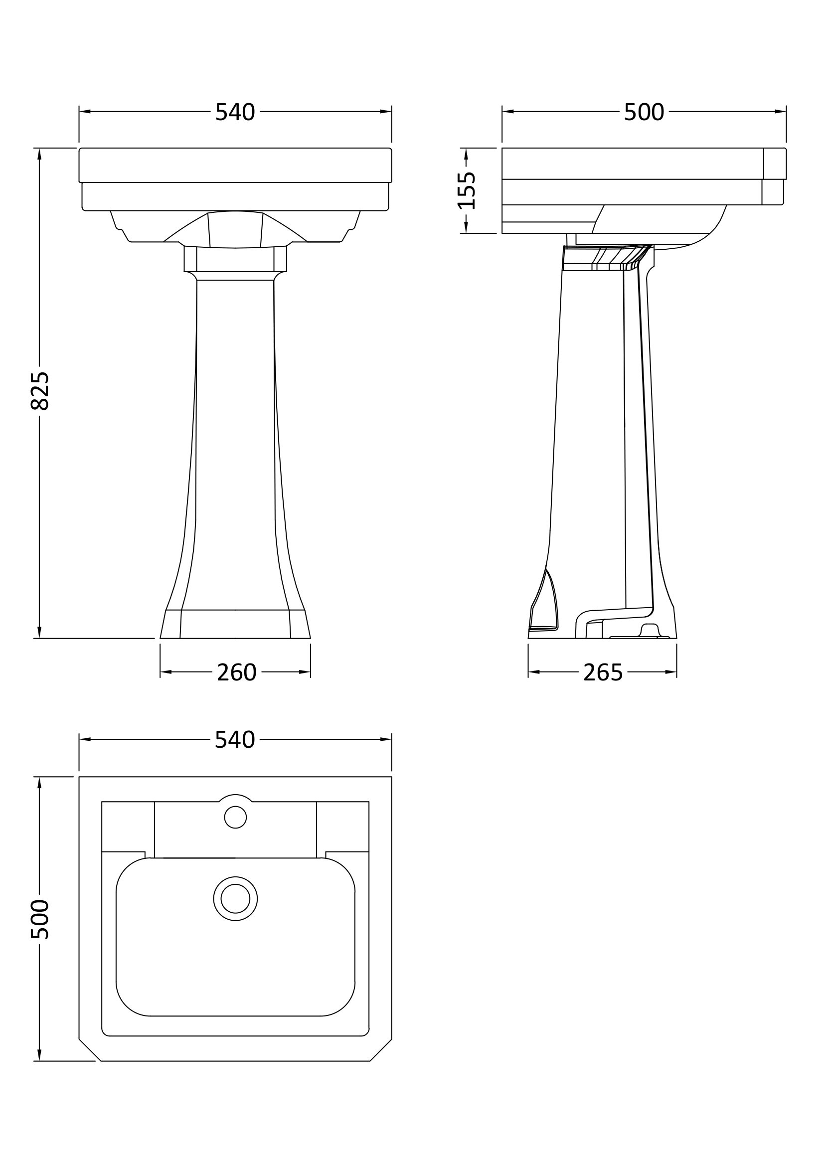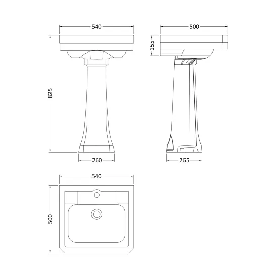 Victrion 640mm Basin & Pedestal 1TH - White
