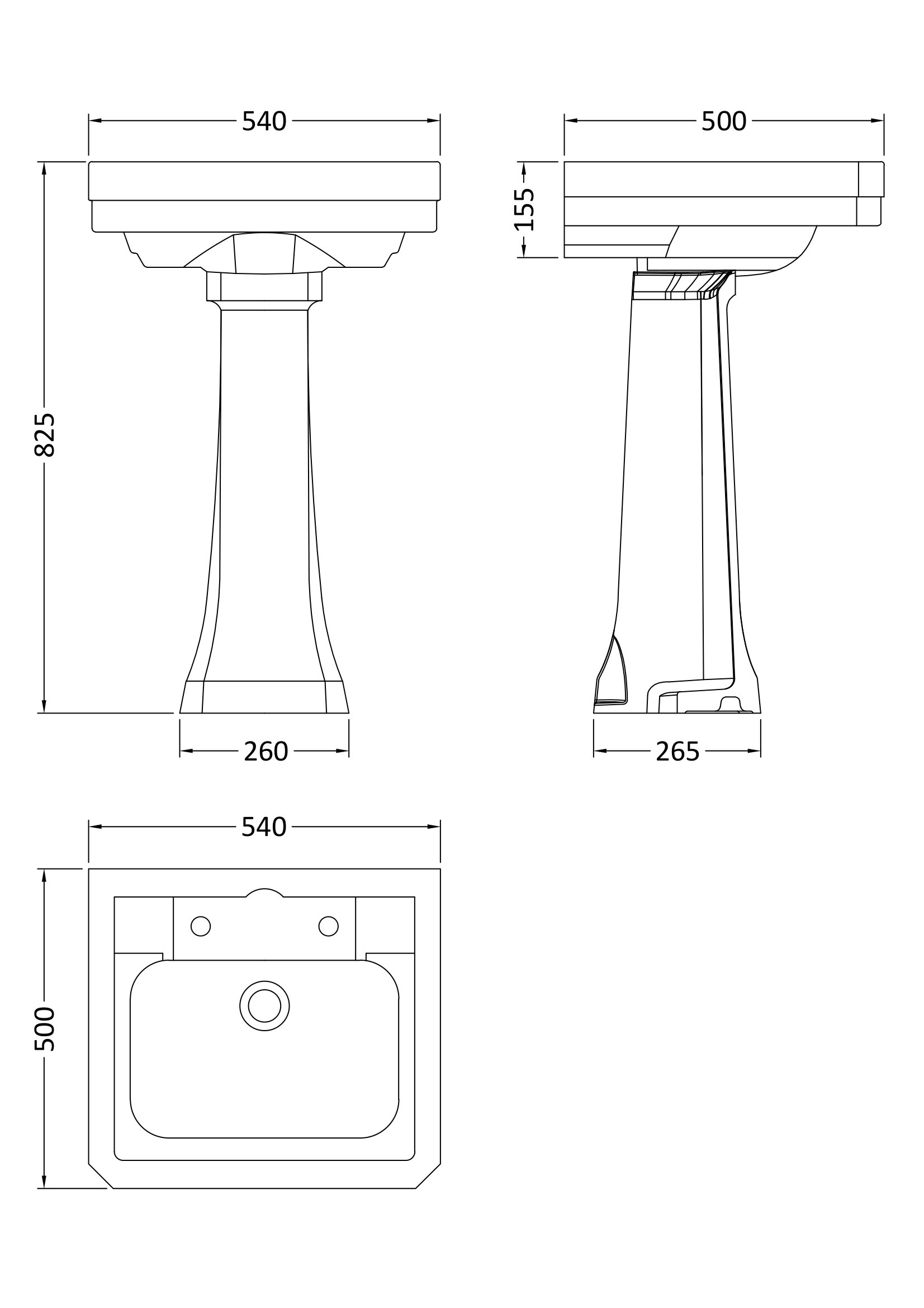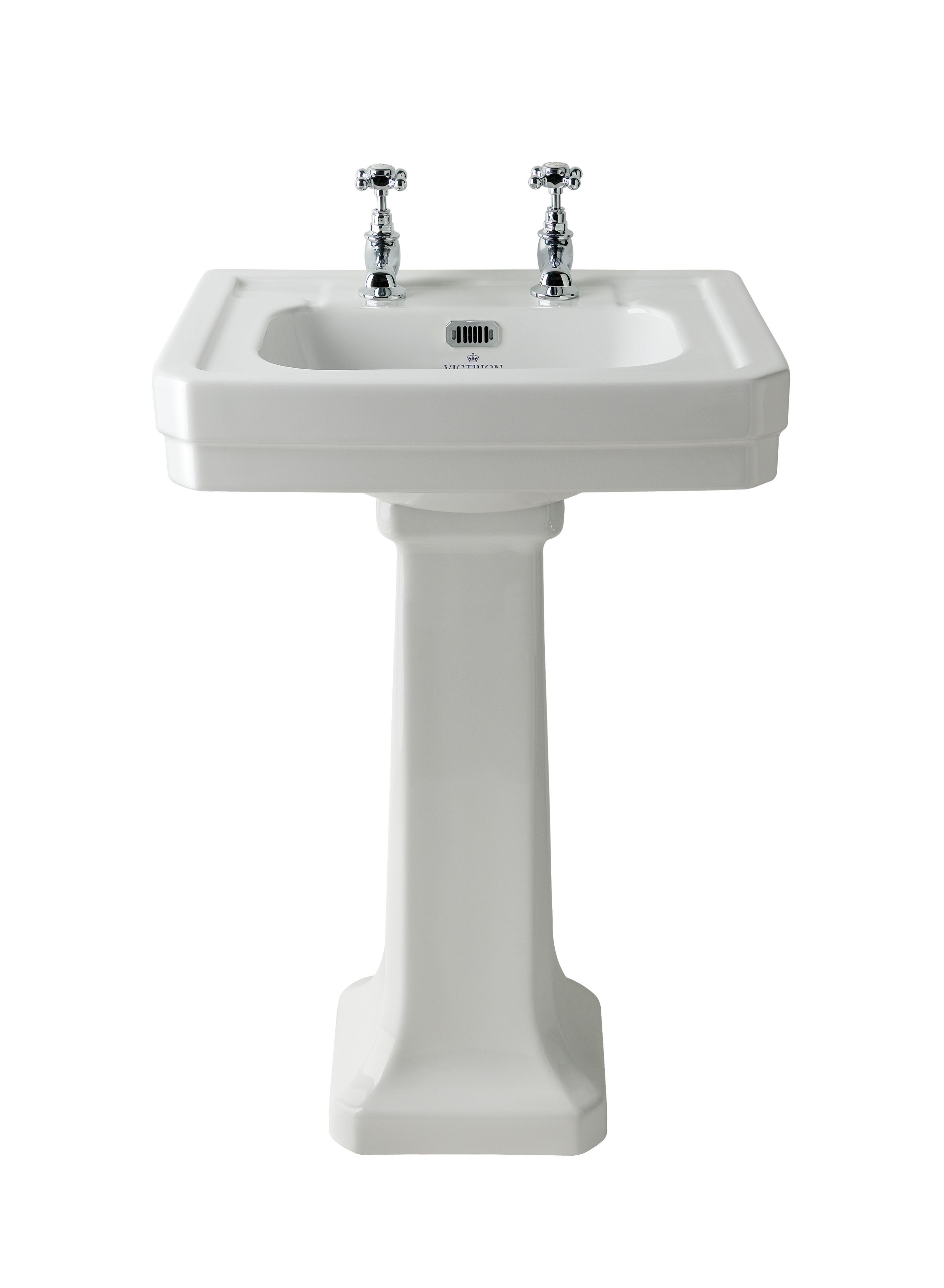 BC Designs Victrion 640mm Basin & Pedestal 2TH - White