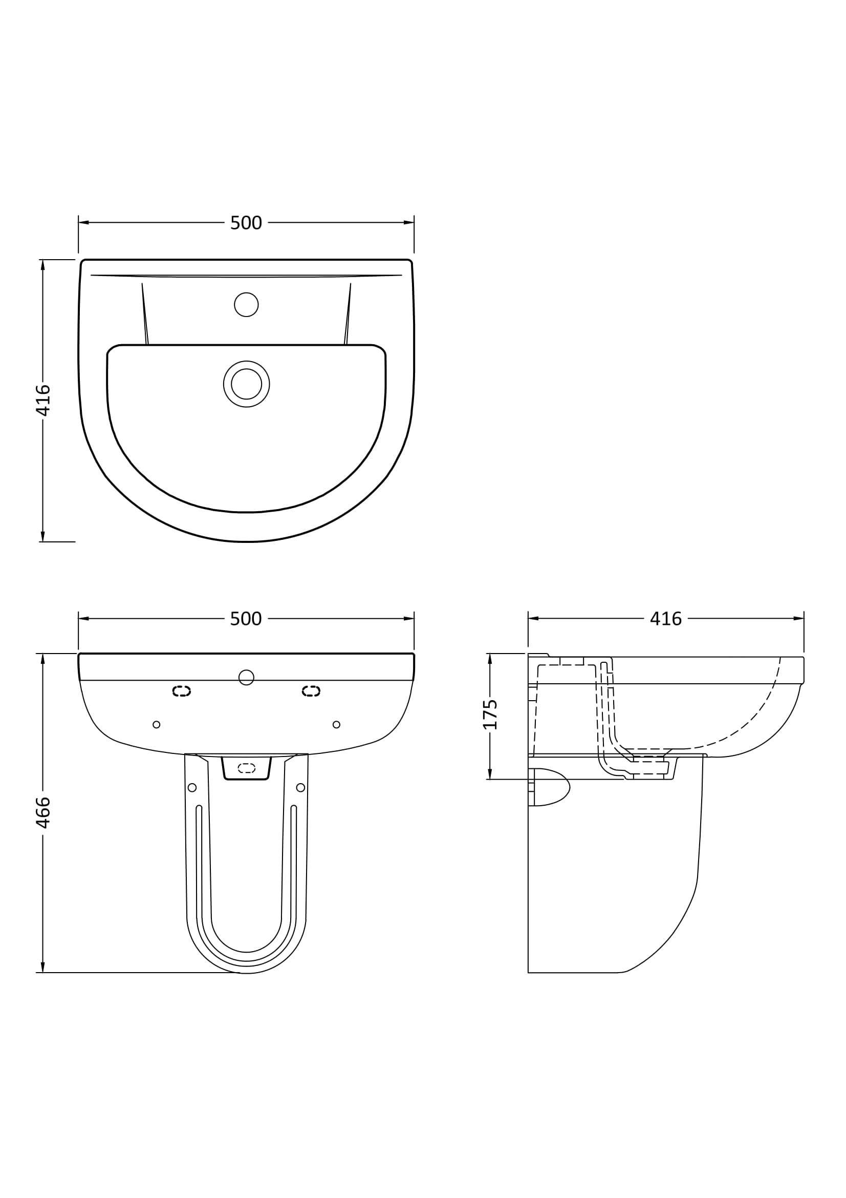 Nuie 550mm 2 Tap Hole Semi Pedestal Basin