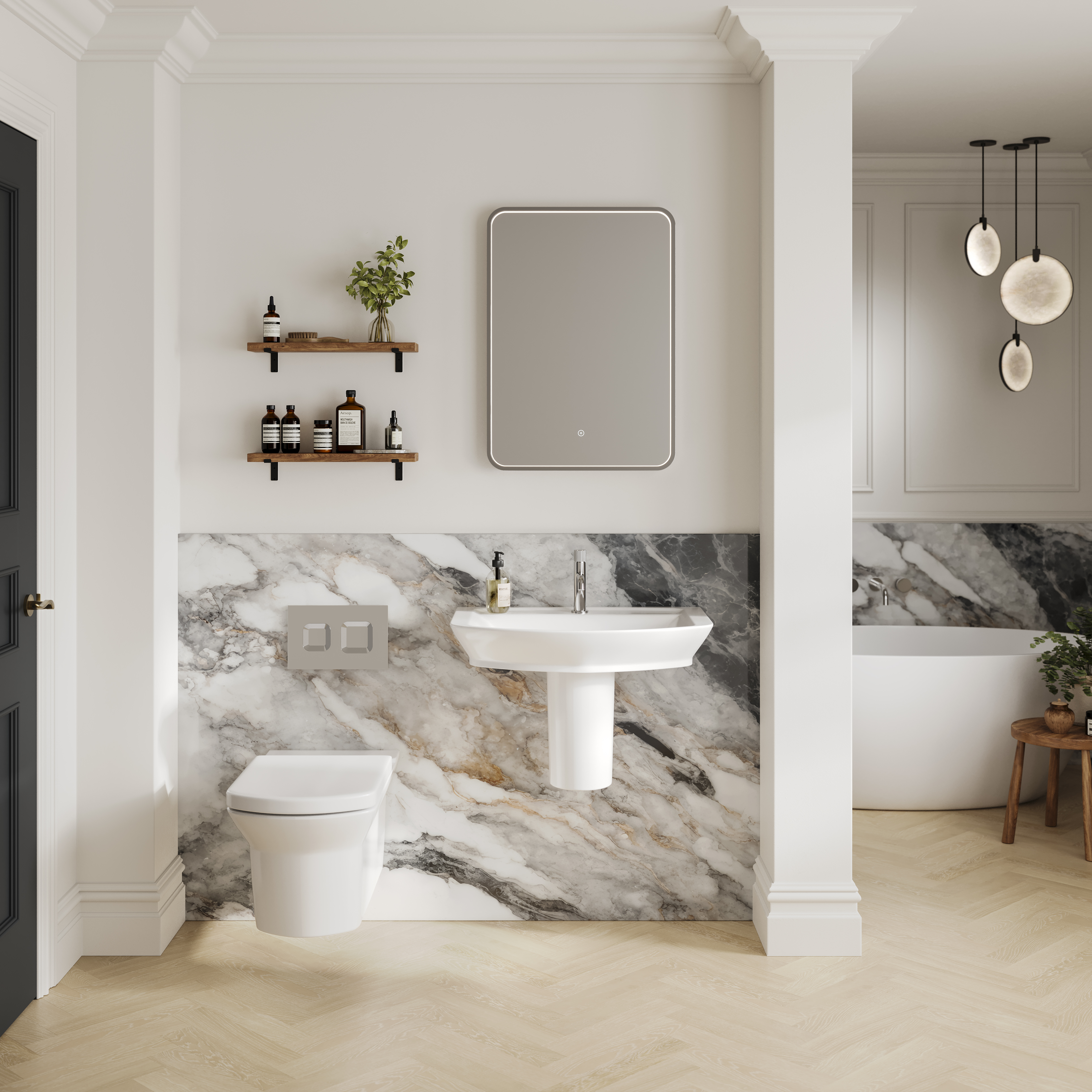 Nuie Lux Lulworth 650mm Basin & Semi Pedestal - White