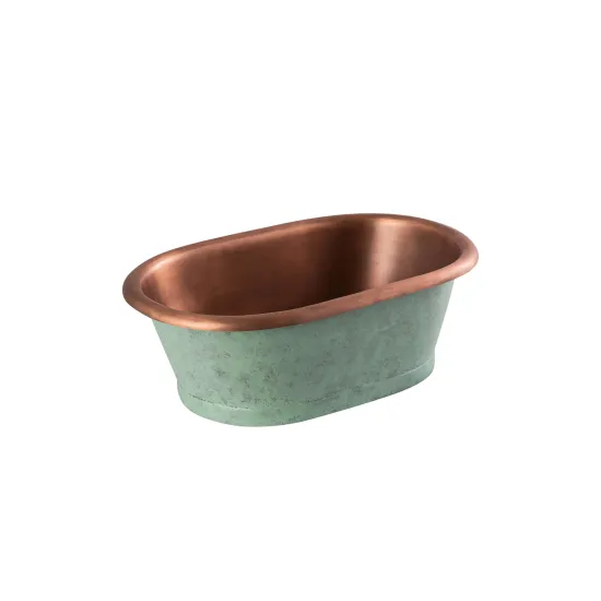 Copper Basins Oval Countertop Basin with Copper Inner, Patinata Outer