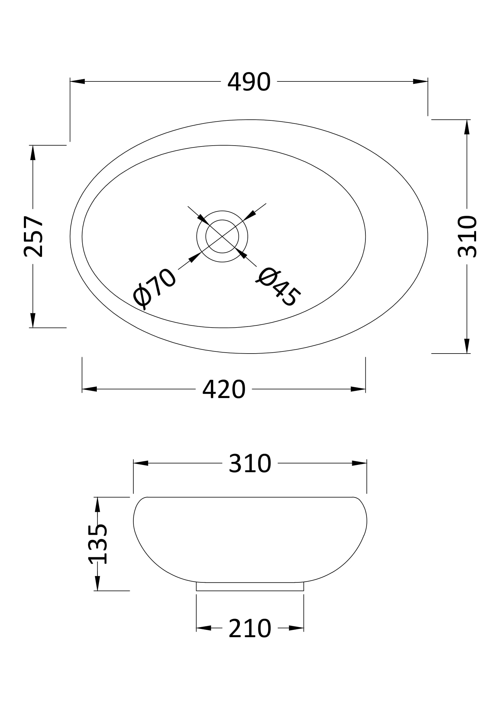 Oval Vessel 565 x 350 x 145mm