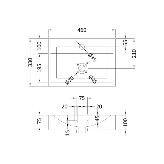 Rectangular Vessel Basin 460 x 330 x 100mm
