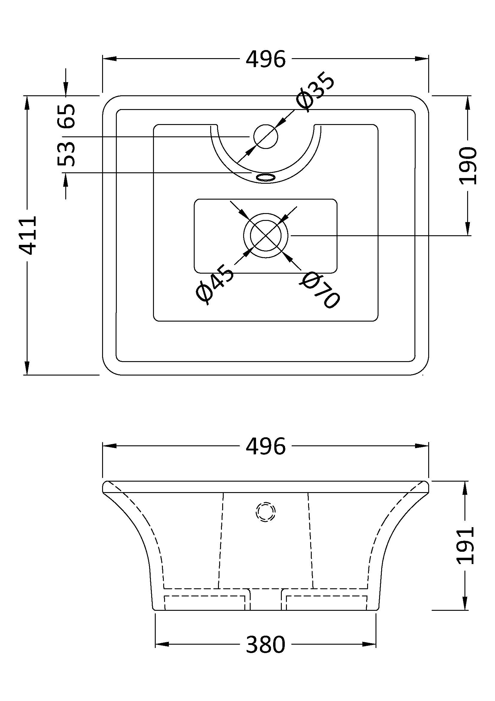 Rectangular Vessel Basin 460 x 330 x 100mm