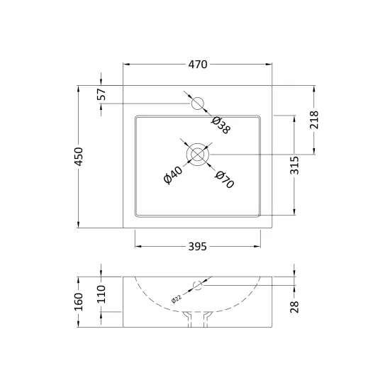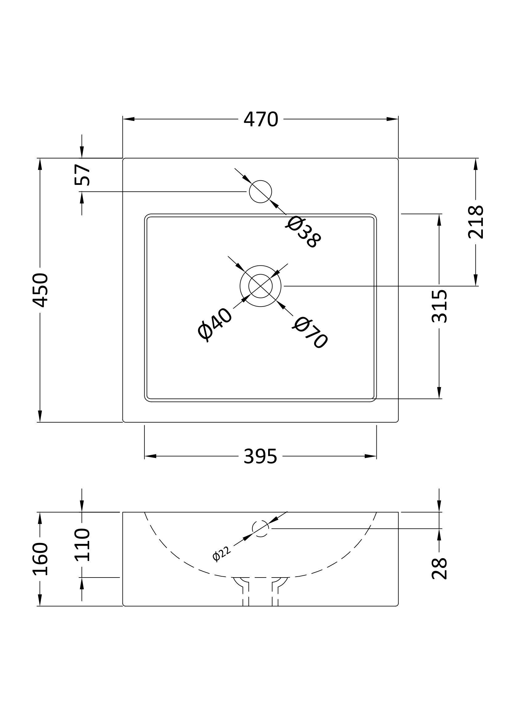 Rectangular Vessel Basin 460 x 470 x 160mm