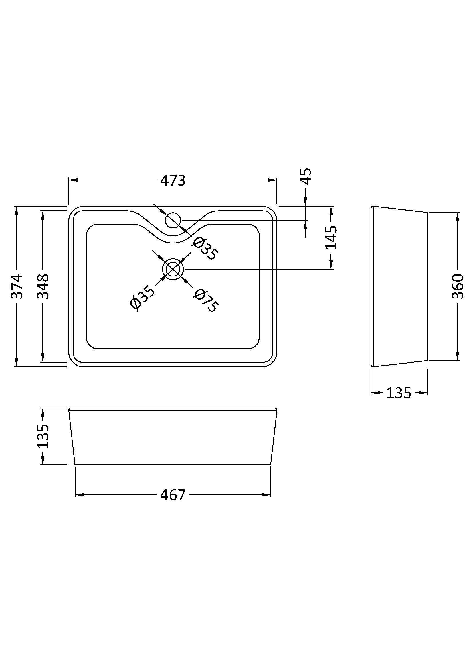 Rectangular Vessel Basin 485 x 374 x 135mm