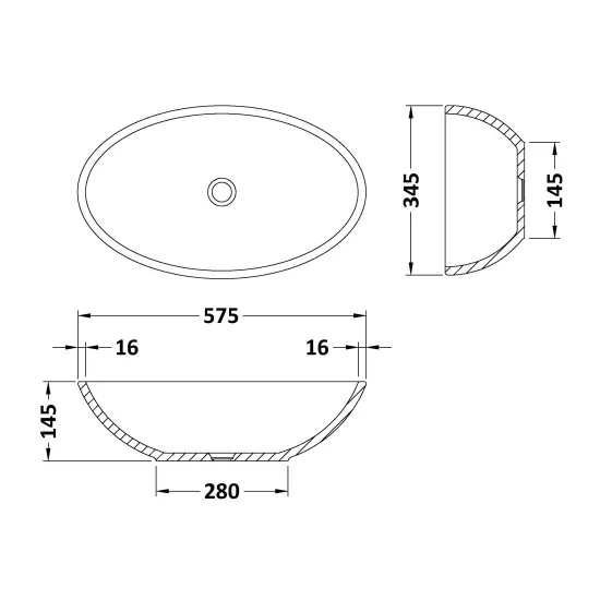 Tasse Oval Countertop Basin 575mm x 145mm - No Waste