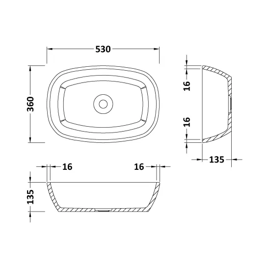Vive Soft Square Basin 530mm x 360mm - No Waste