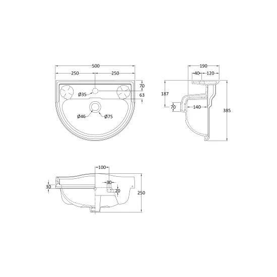 Old London Chancery 500mm Basin 1 Tap Hole