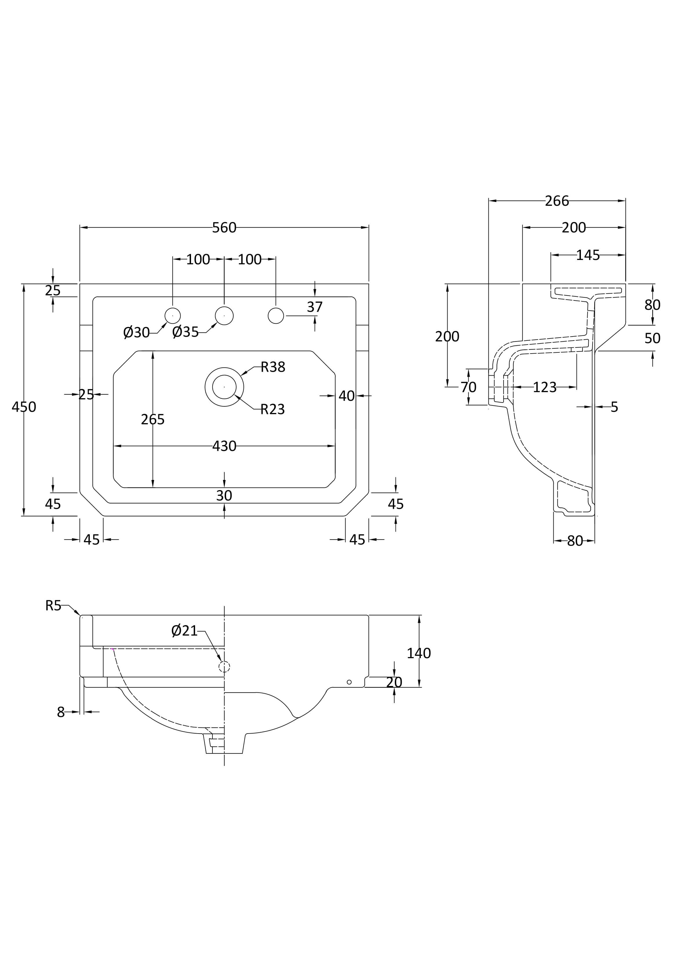 Synergy Henbury 560mm 3 Tap Hole Basin