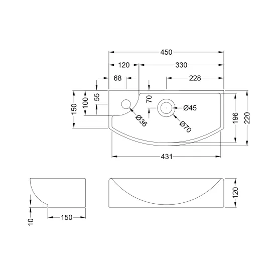 A compact basin combining soft curves and angular design