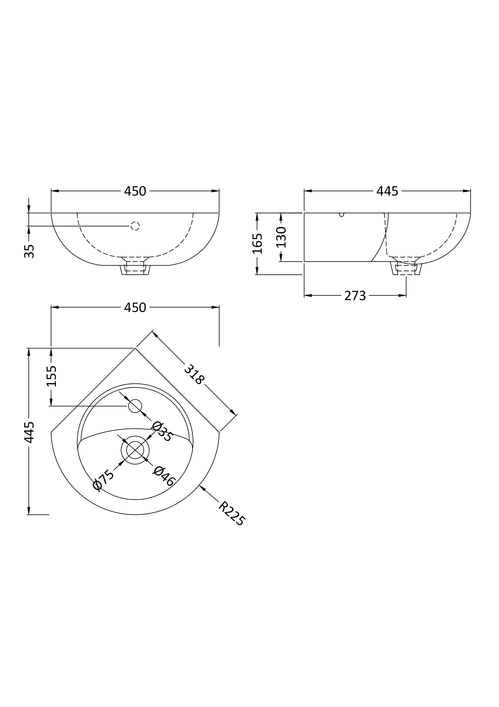 nuie choice Ramsay Corner Wall Hung Basin - White