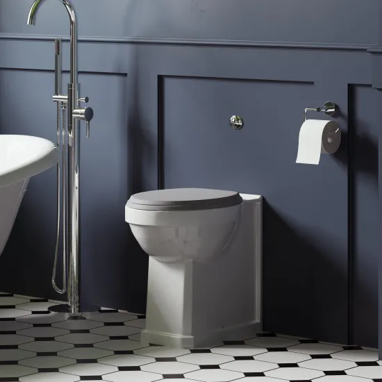 Bayswater Fitzroy BTW Comfort Height WC Including Seat & Cistern - White/Plummett Grey