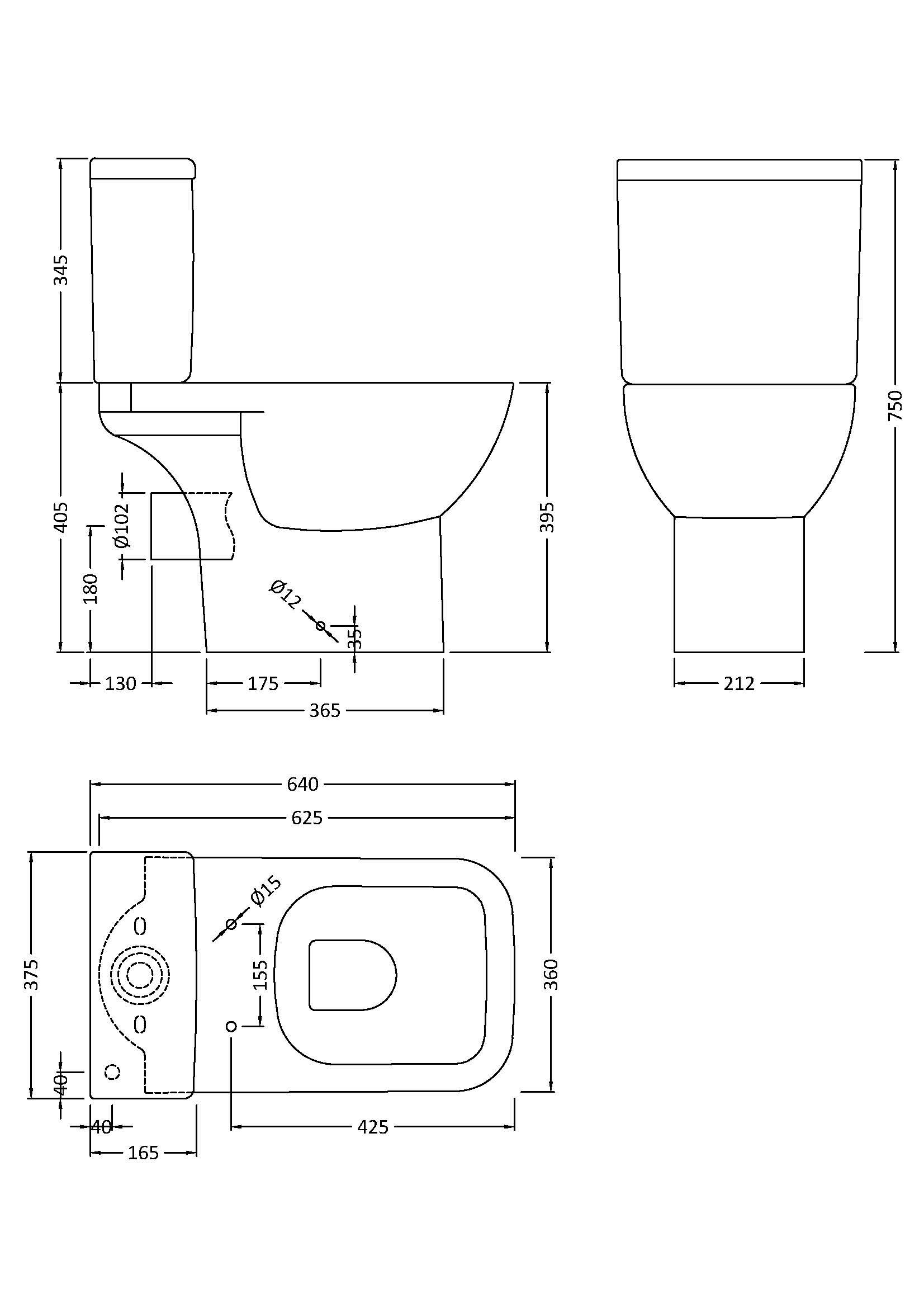 Arley Biab Short Projection Pan, Cistern & Seat - White
