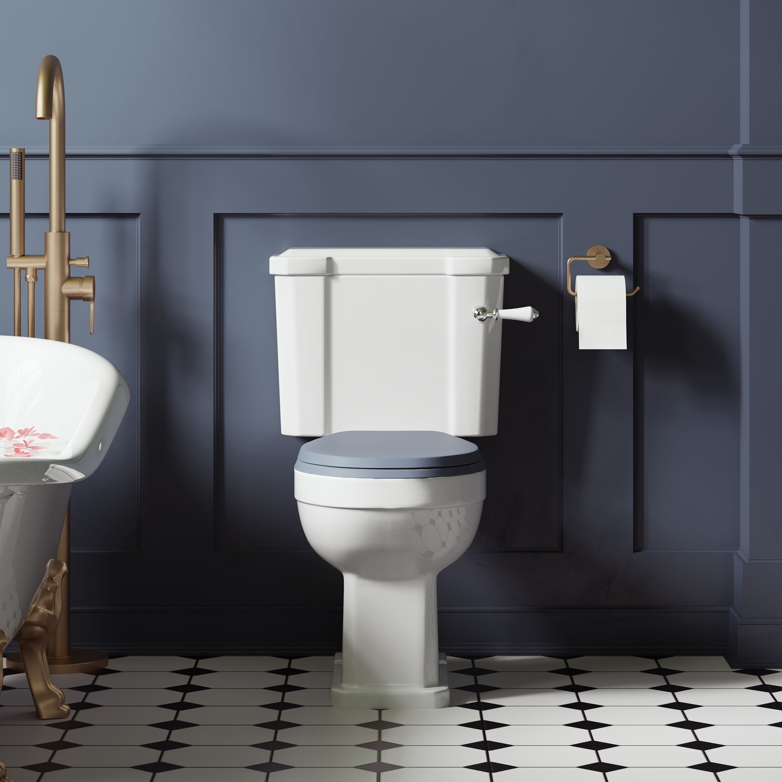 Bayswater Fitzroy Close Coupled WC & Wooden Seat - White/Stiffkey Blue