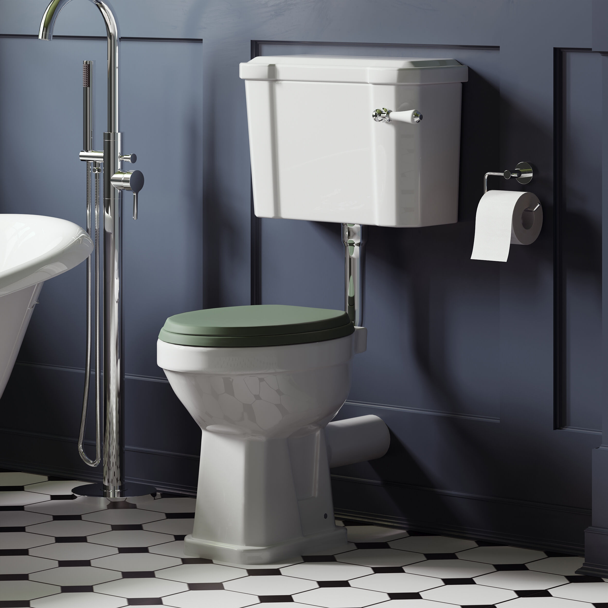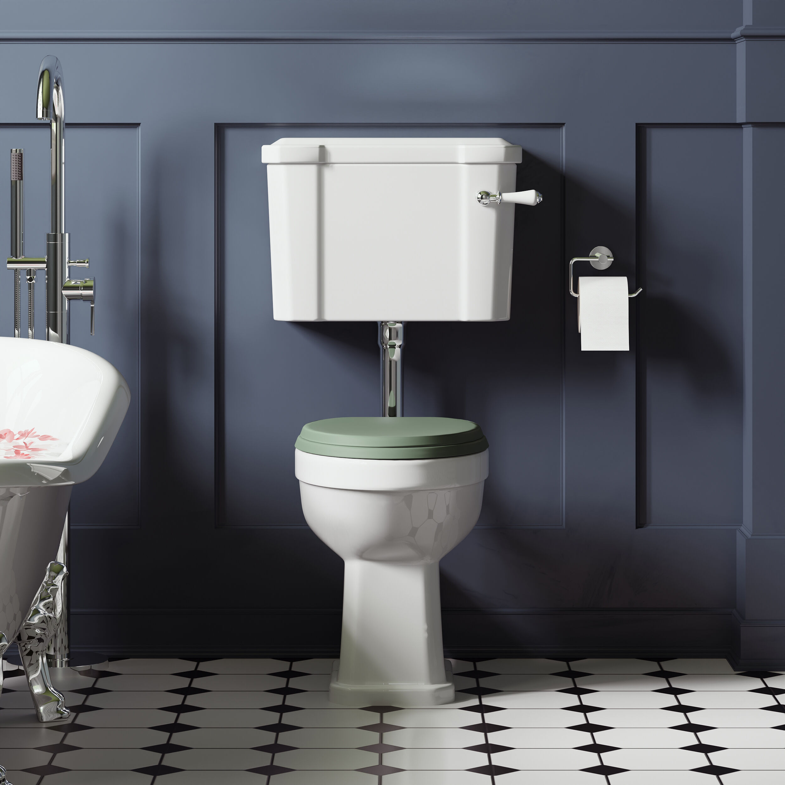 Bayswater Fitzroy Low Level Comfort Height WC & Seat - White/Hunter Green