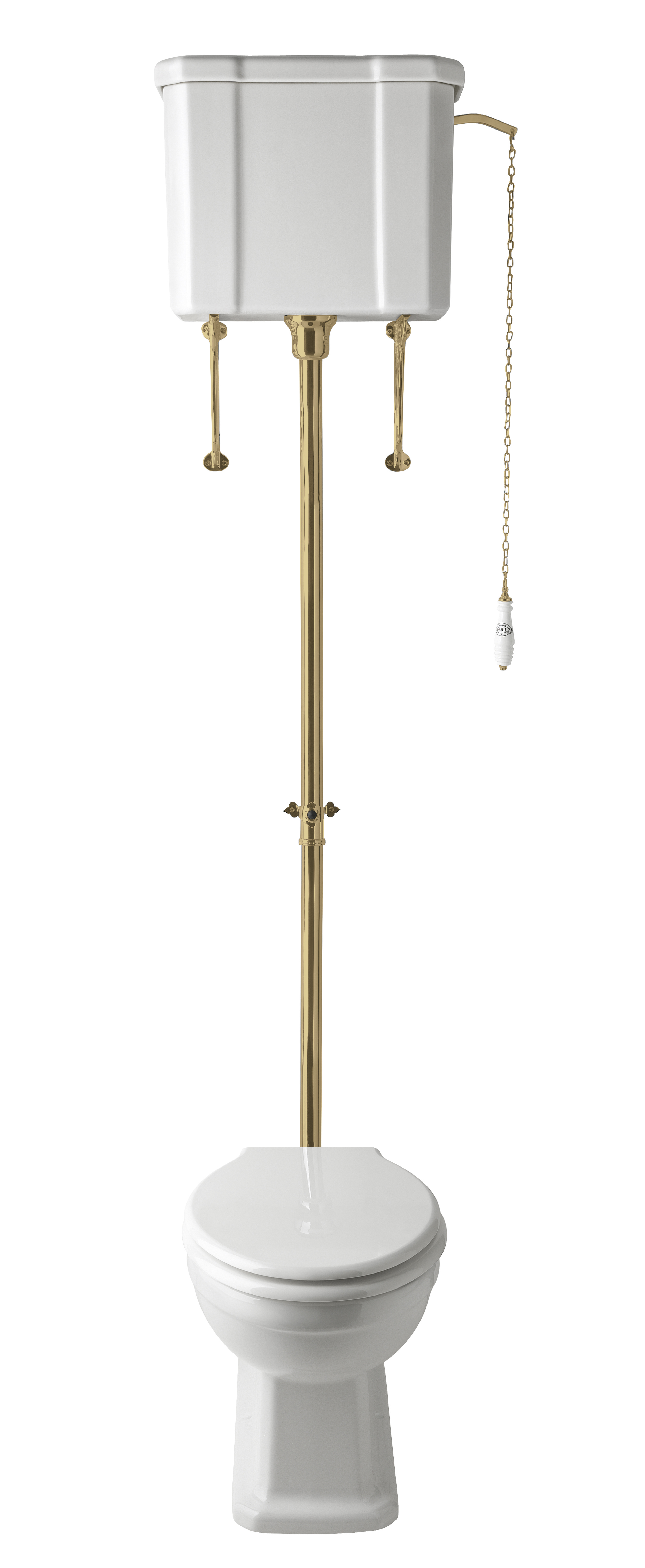 Nuie Lux Hunton High Level Comfort Height White/Brushed Brass Toilet Including Cistern & Flush Pipe
