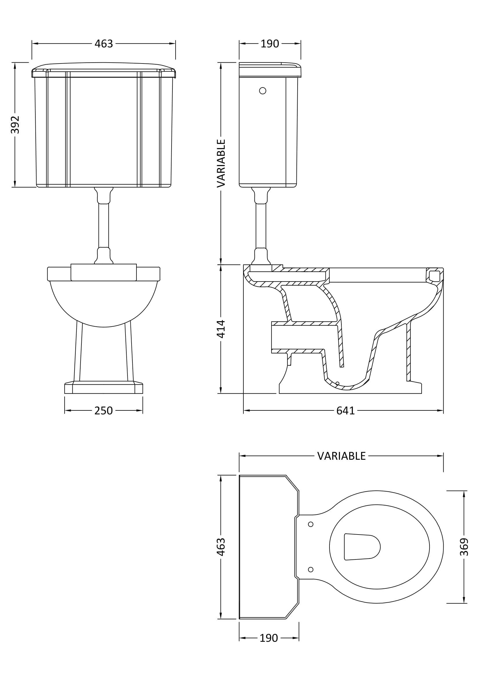 Nuie Lux Hunton Pan, High Level Cistern & Pipe - White/Brushed Brass