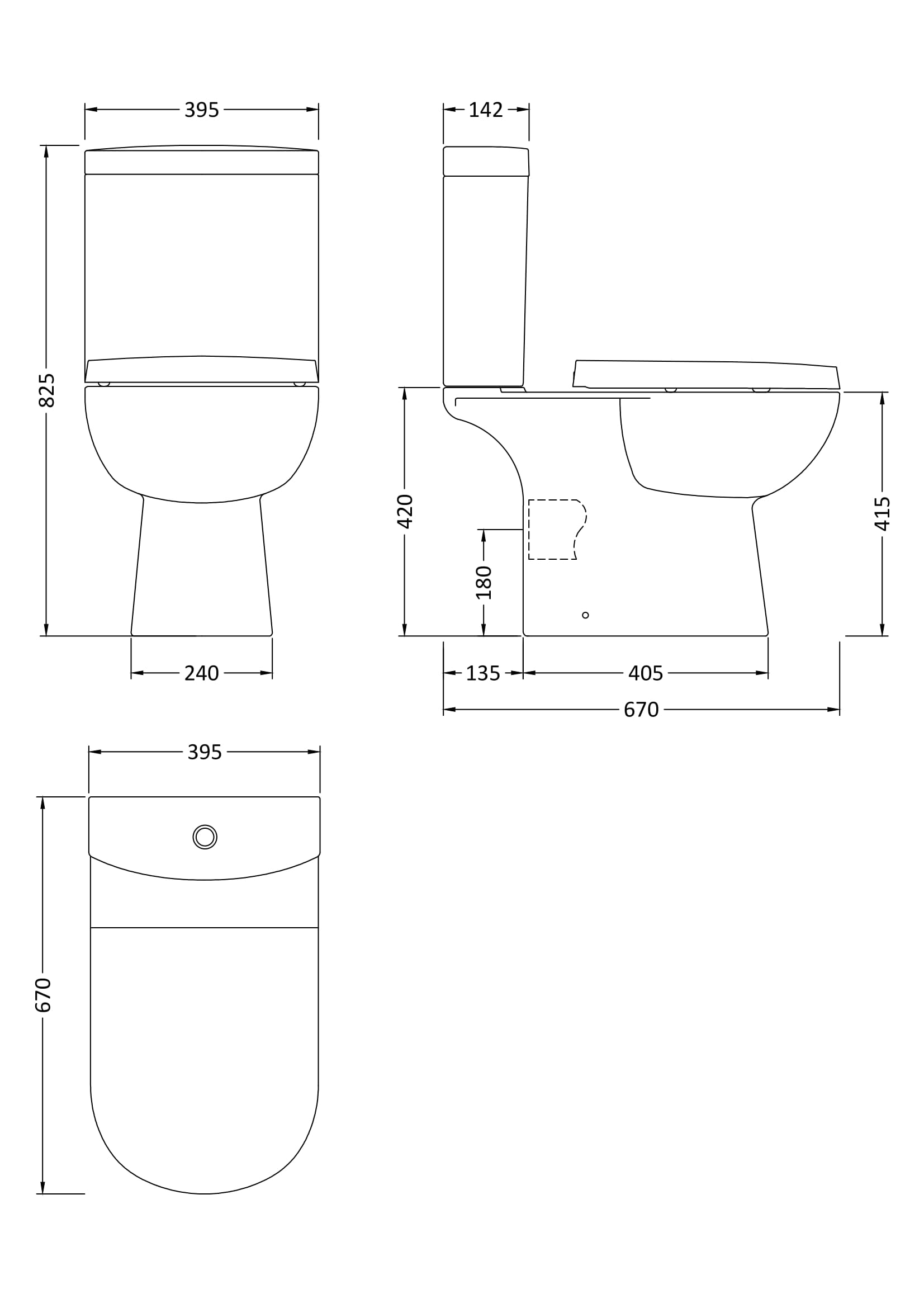 Nuie Harmony 380mm White Semi Flush-to-Wall Toilet Pan & Cistern