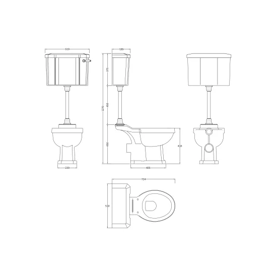 Old London Richmond Mid Level Pan, Cistern and Flush Pipe Kit