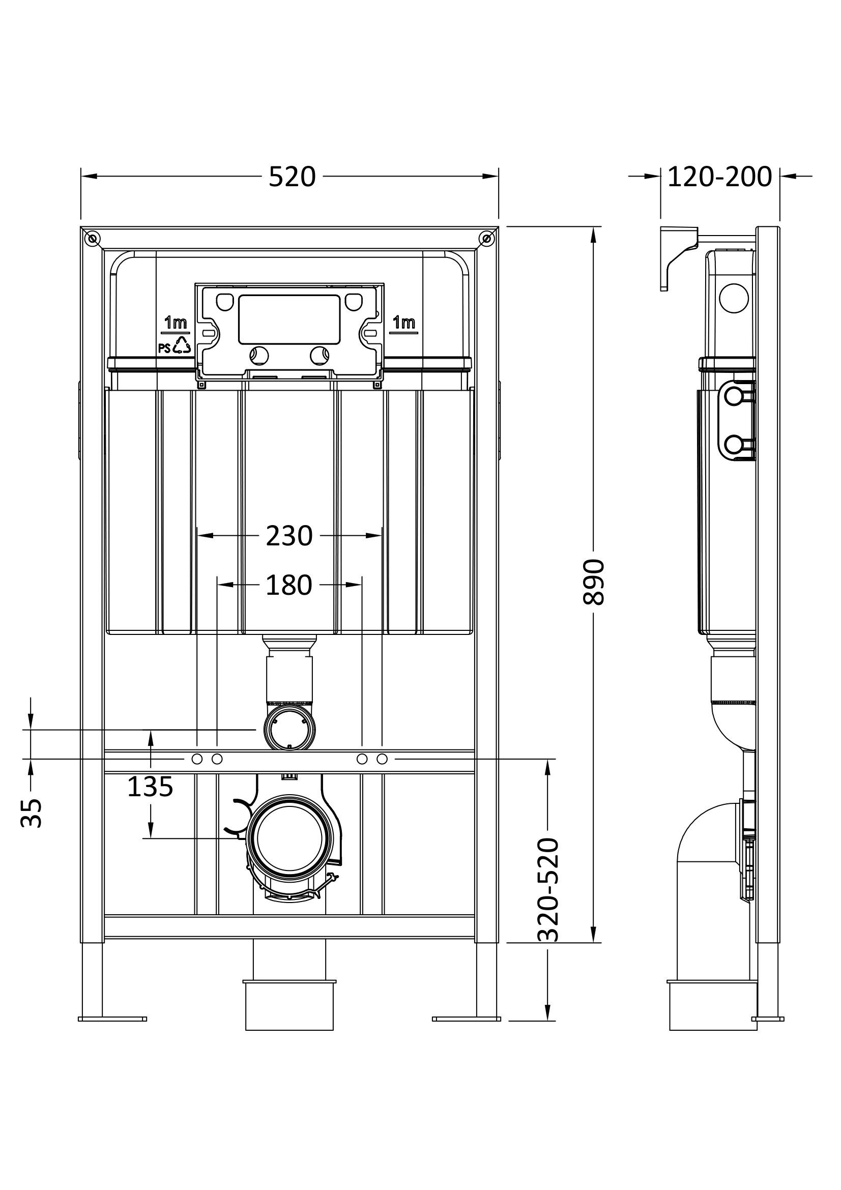 Mid Height Concealed Cistern Wall Frame