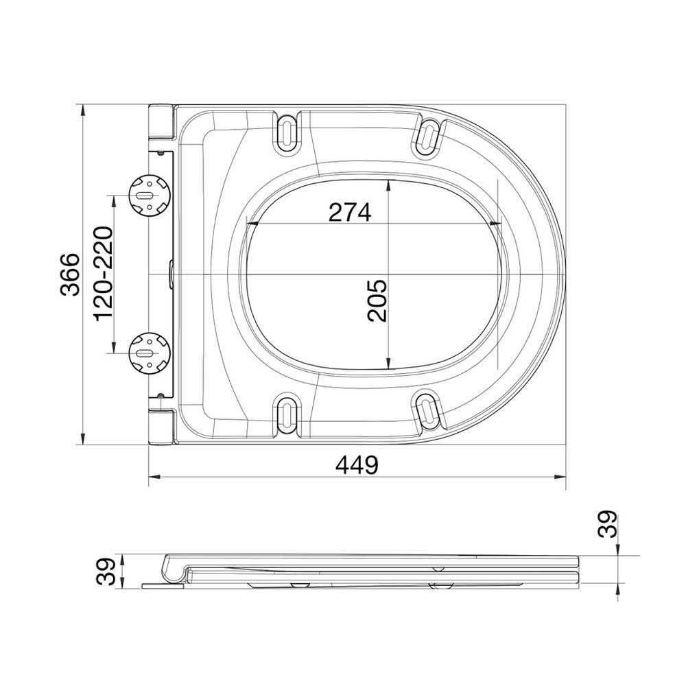 Arley Middle D-Shaped Slimline Soft Close Toilet Seat With Top Fix Hinge