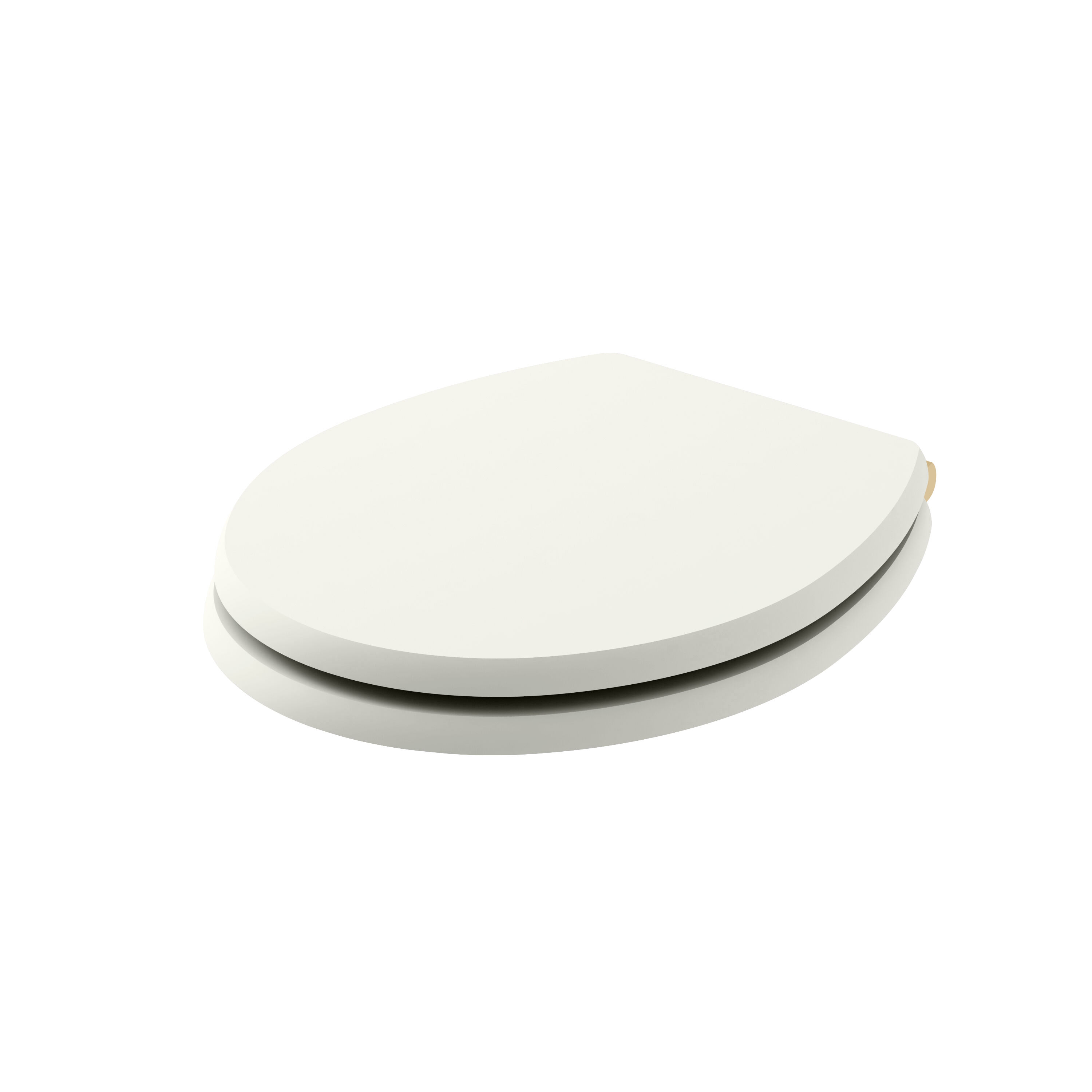 Fitzroy Traditional Round Wood Seat Soft Close Brushed Brass Hinge, Top Fixing