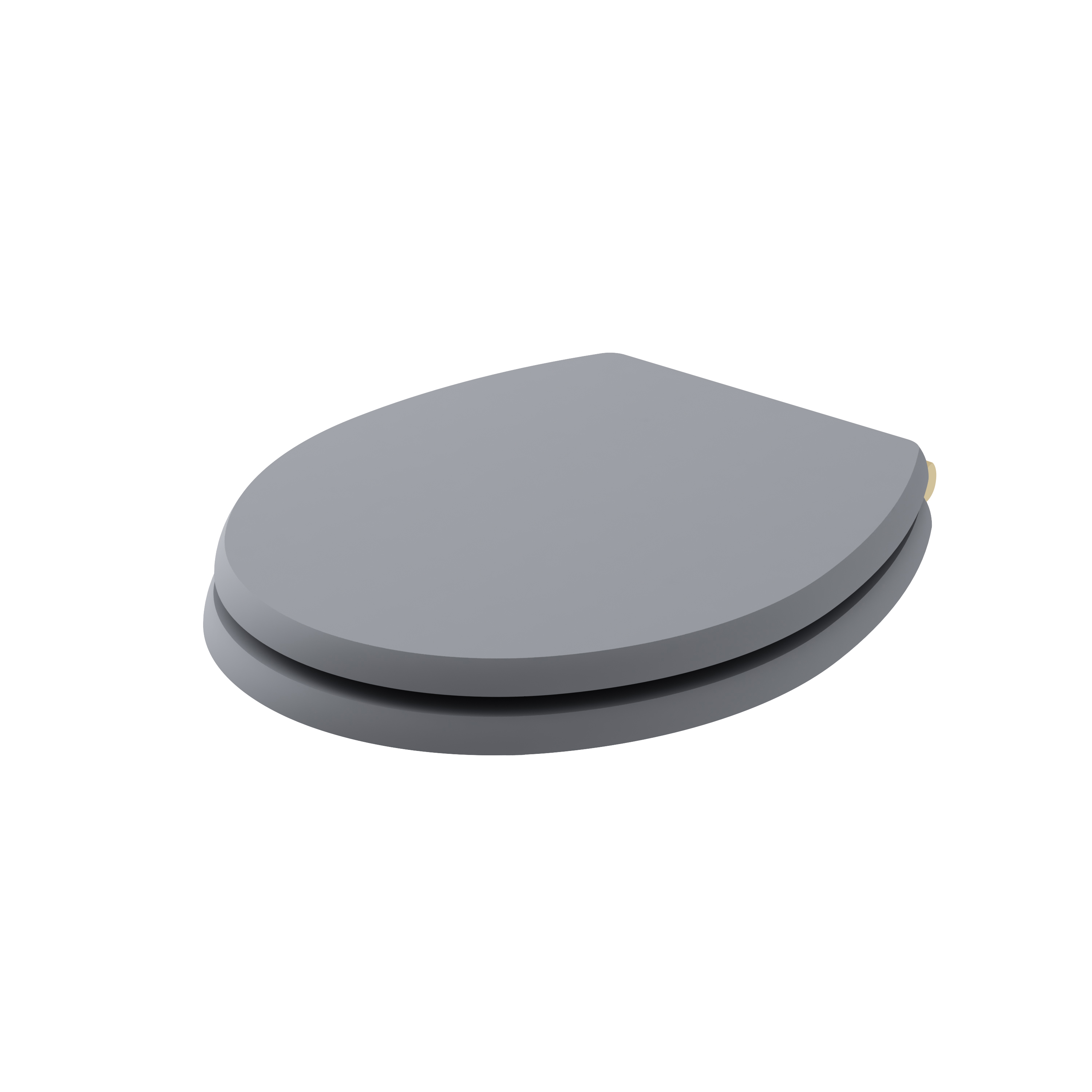 Fitzroy Traditional Round Wood Seat Soft Close Brushed Brass Hinge, Top Fixing