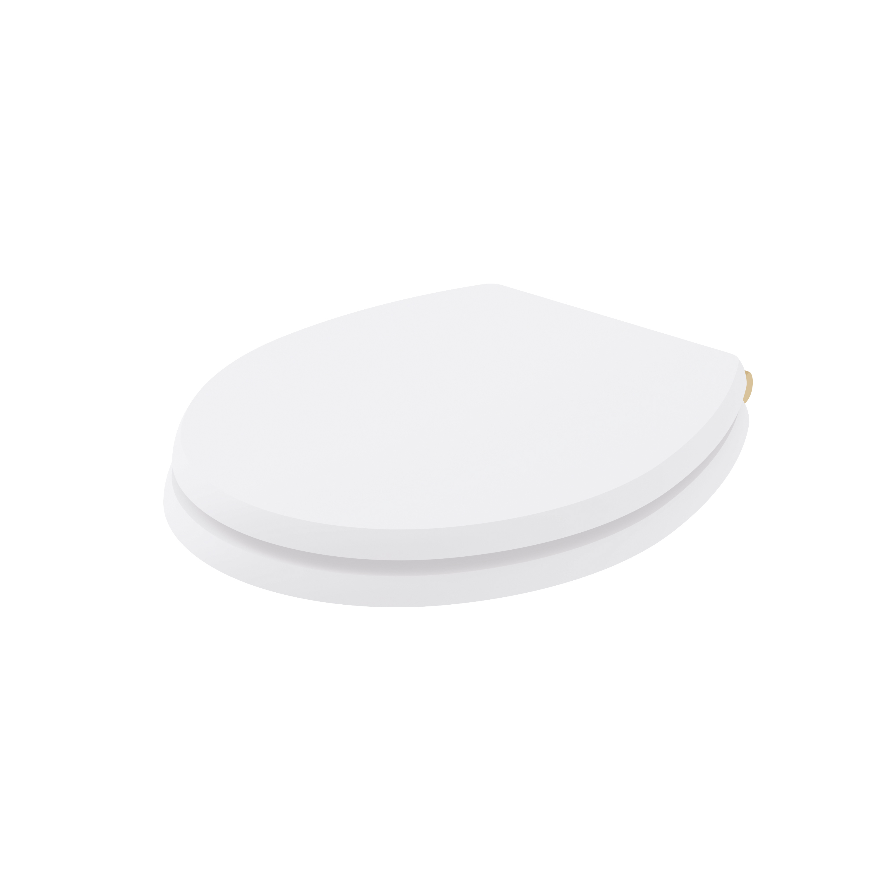Fitzroy Traditional Round Wood Seat Soft Close Brushed Brass Hinge, Top Fixing