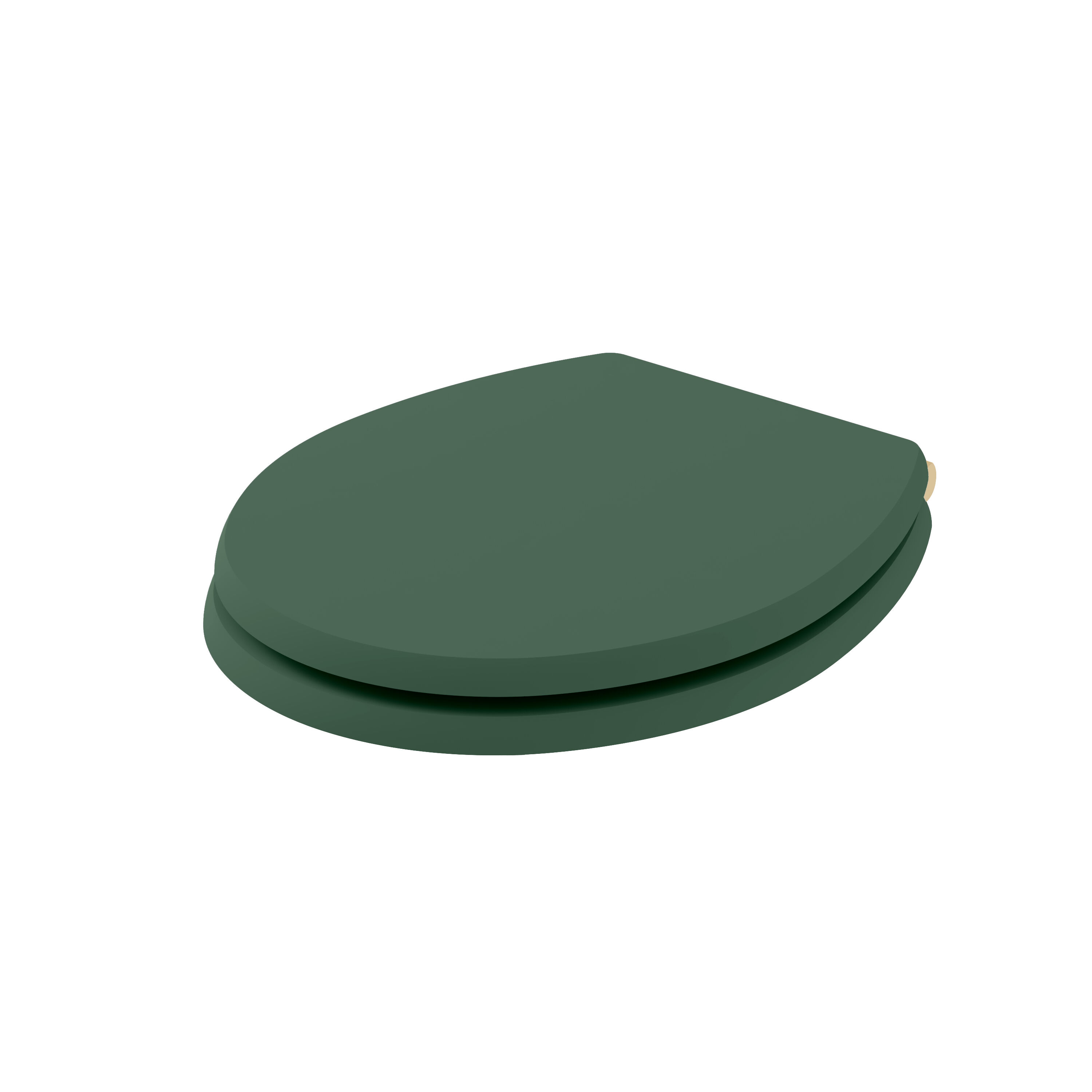 Fitzroy Traditional Round Wood Seat Soft Close Brushed Brass Hinge, Top Fixing