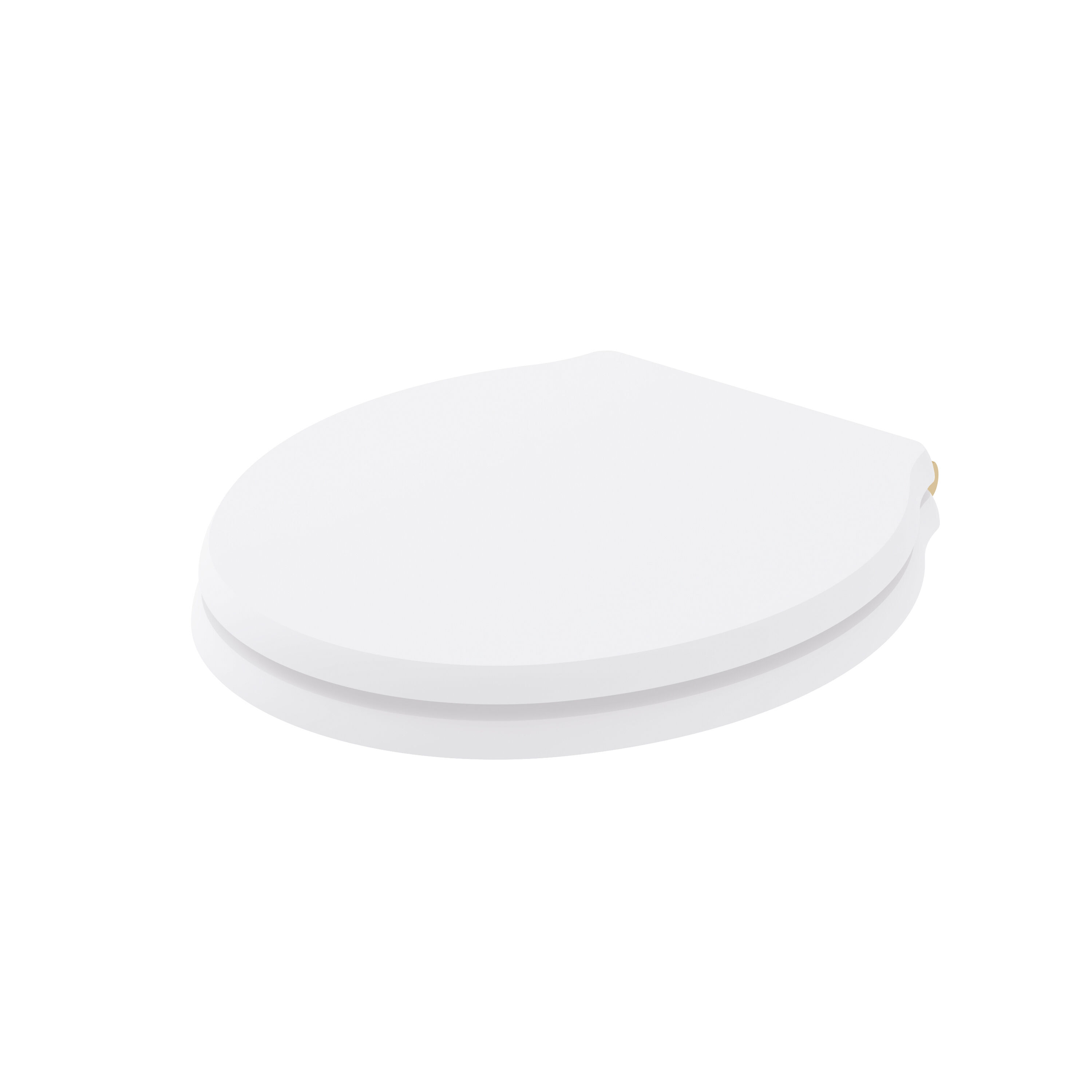 Porchester Traditional Round Wood Seat Soft Close Brushed Brass Hinge, Top Fixing