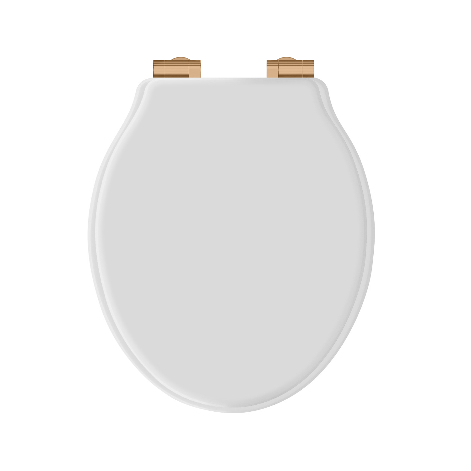 BC Designs Victrion White Gloss Toilet - Soft Close Seat - Brushed Copper