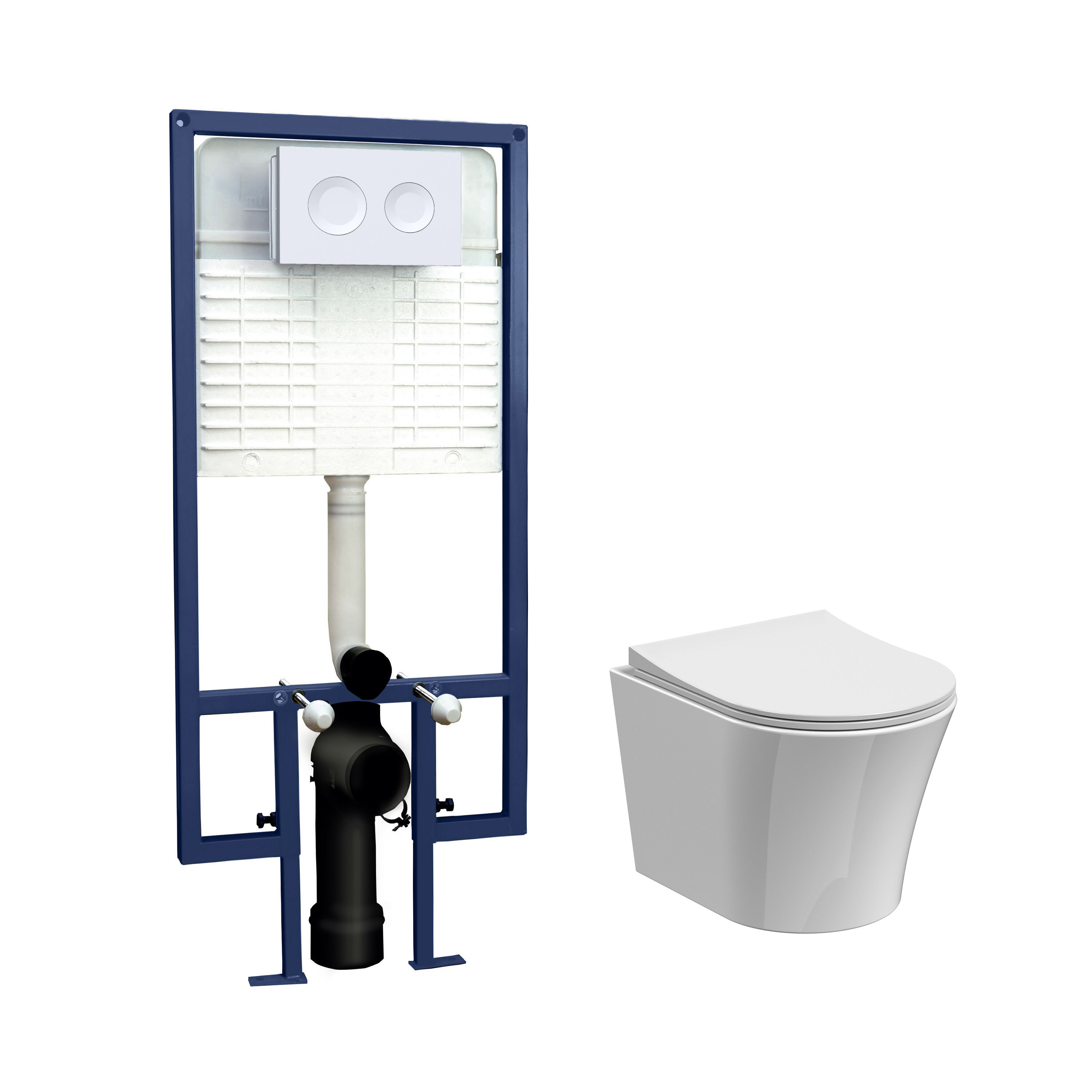 Vitreous china pan in crisp white for durability and easy cleaning.Stainless steel concealed cistern for long-lasting performance.Matt white flush plate for a premium, modern look.Includes soft-close seat for quiet, comfortable use.Wall-hung design helps create a minimalist, easy-to-clean bathroom layout.Supplied as a complete 5-in-1 set for a streamlined installation.Backed by a 5-year guarantee.