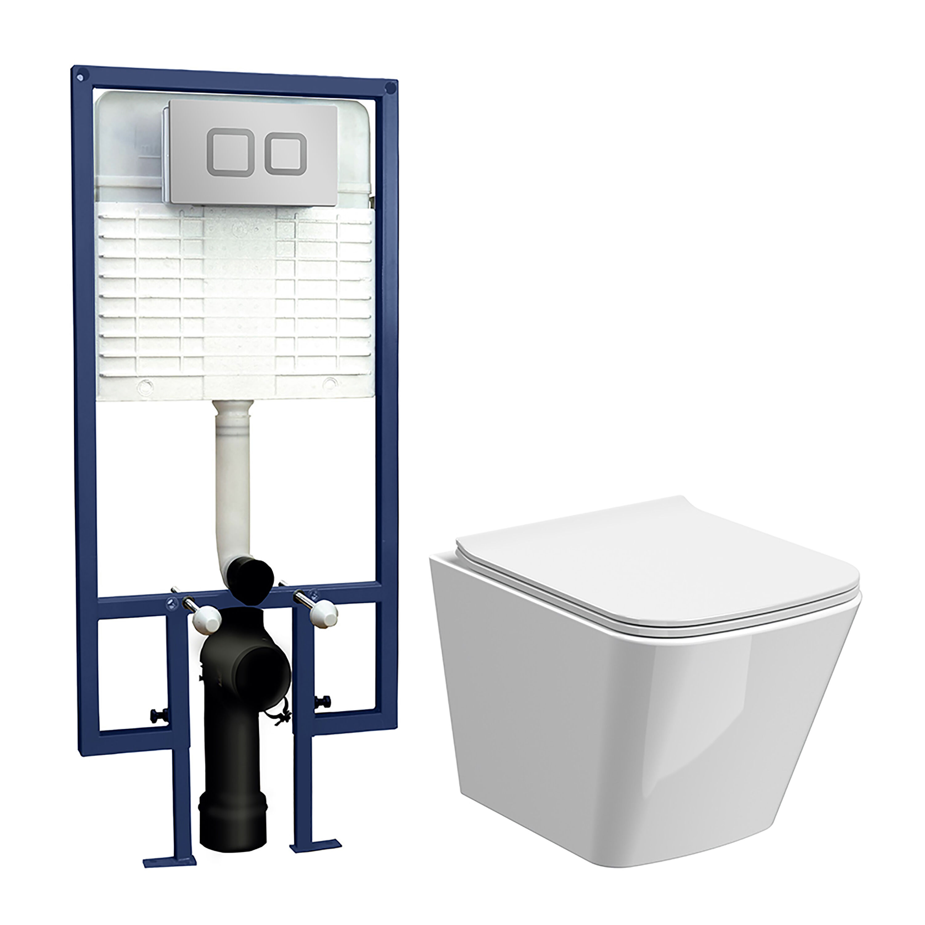 Nuie Modern Square Wall Hung Toilet With Soft Close Seat & Concealed Cistern