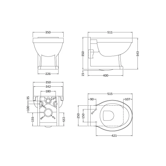 Nuie Traditional 470mm Close Coupled Toilet With Soft Close Seat