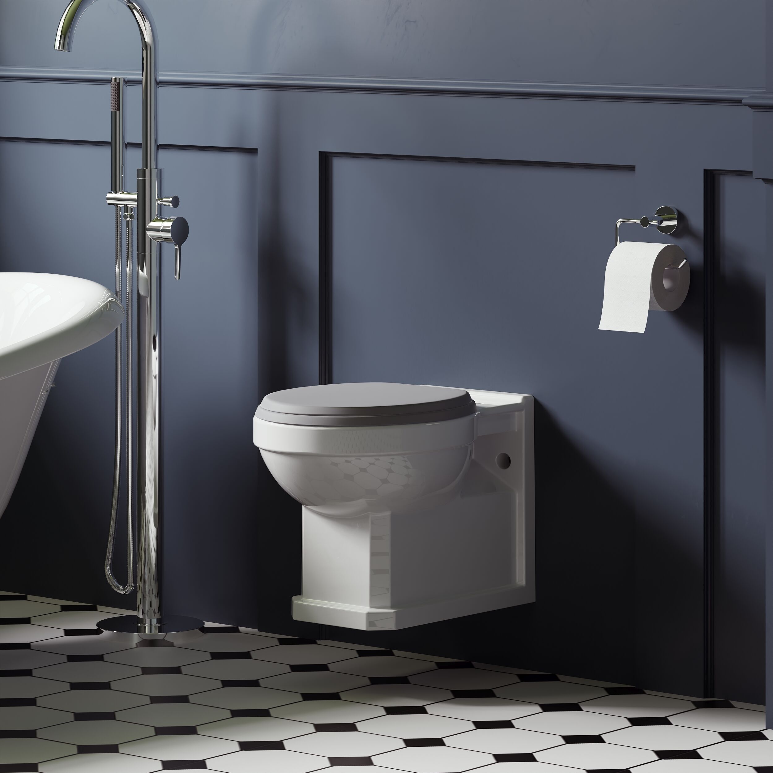 Bring an early Edwardian sensibility to your bathroom with this traditional back to wall pan and seat.