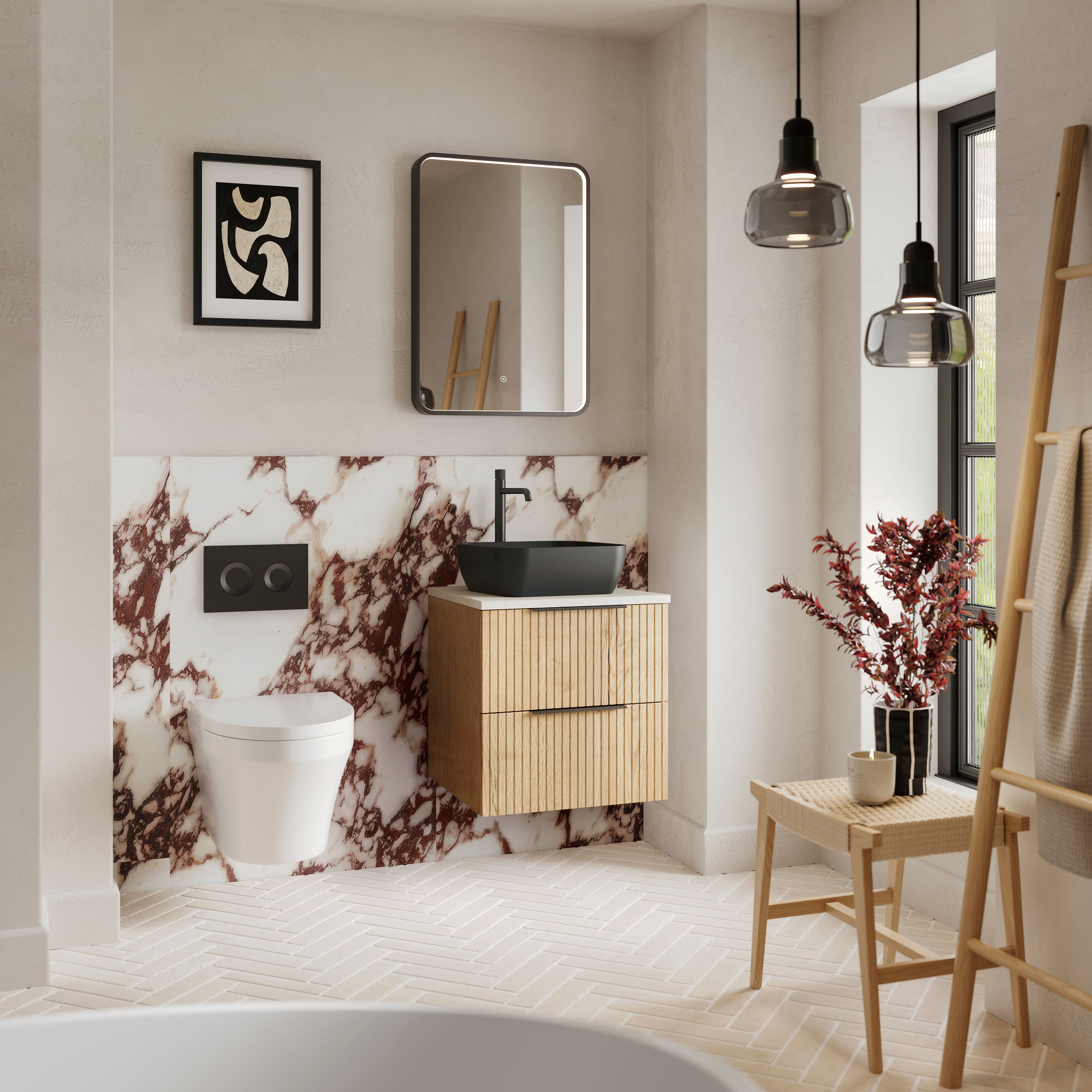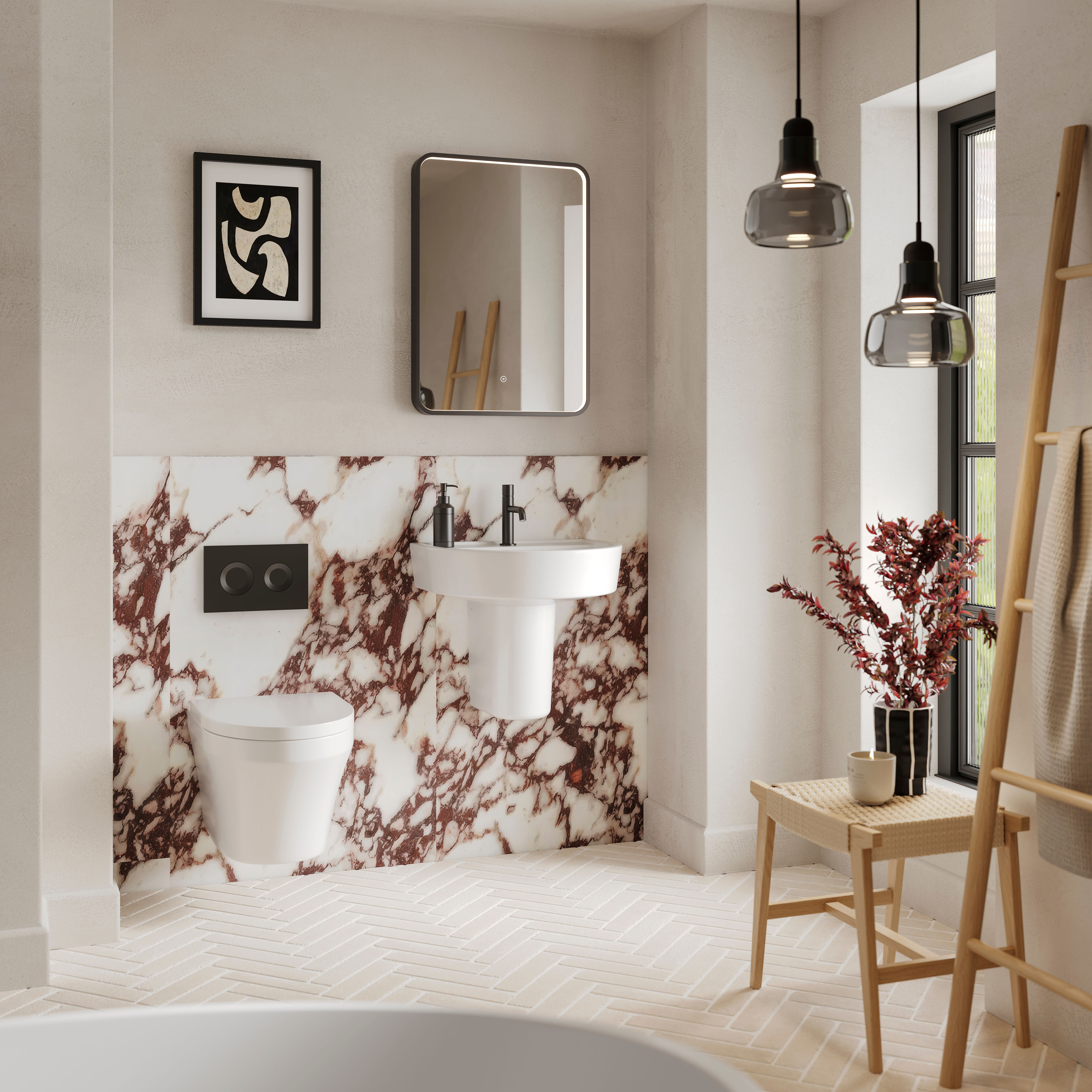 Wall hung design gives the illusion of more floor space and makes the bathroom easier to clean.