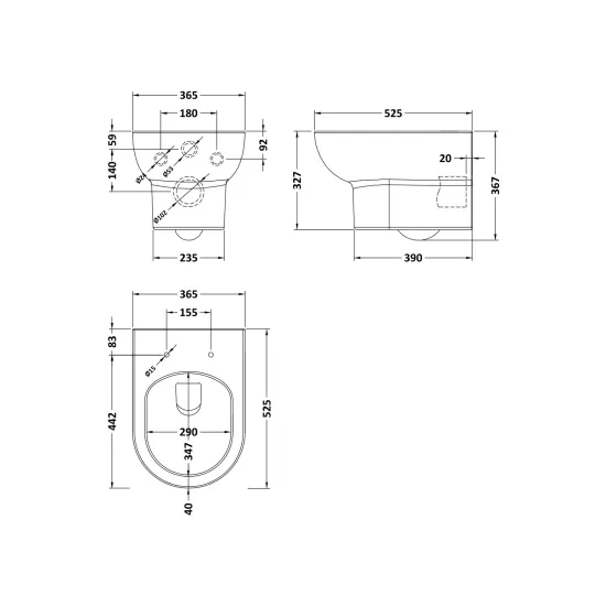 Wall hung design gives the illusion of more floor space and makes the bathroom easier to clean.