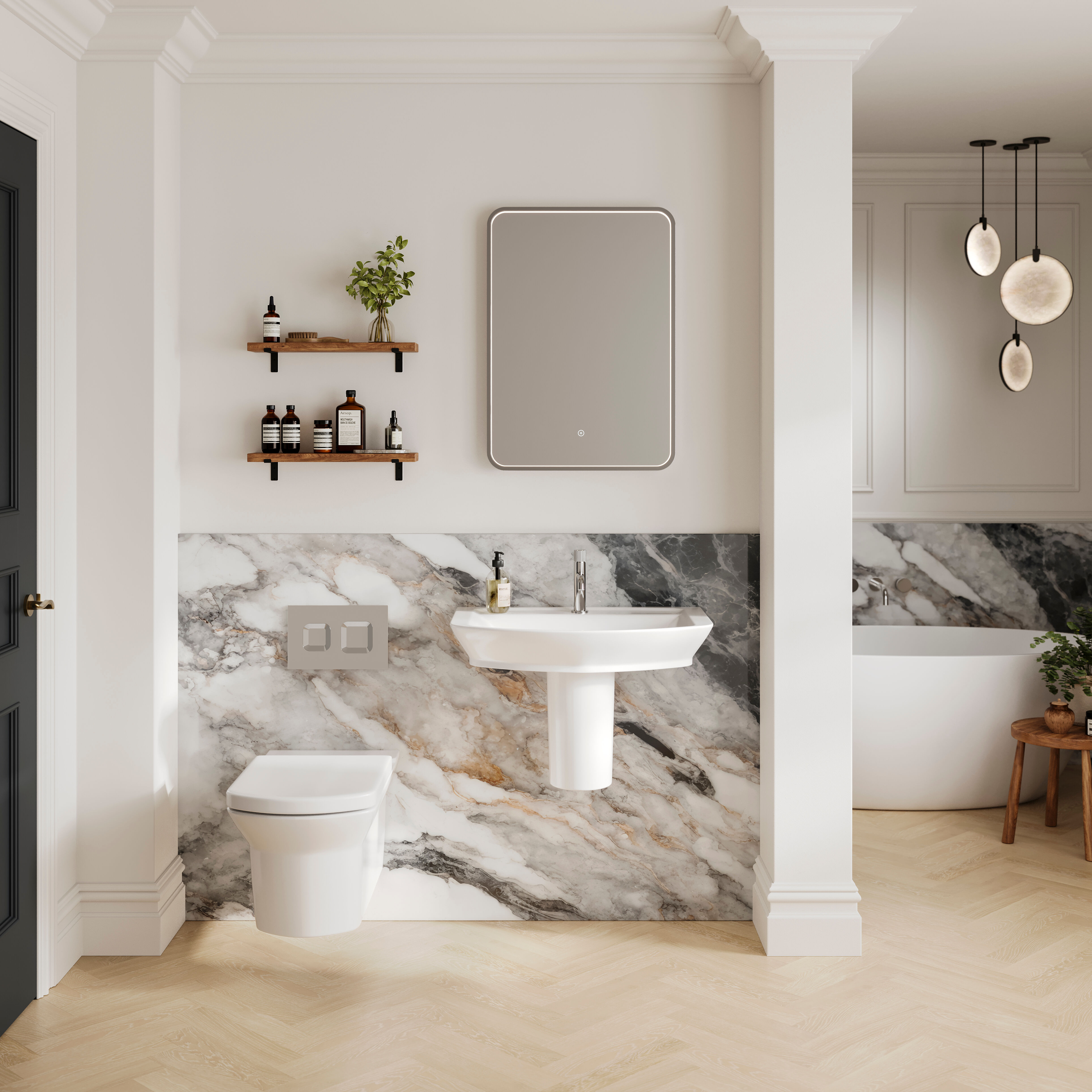 Wall hung design gives the illusion of more floor space and makes the bathroom easier to clean.