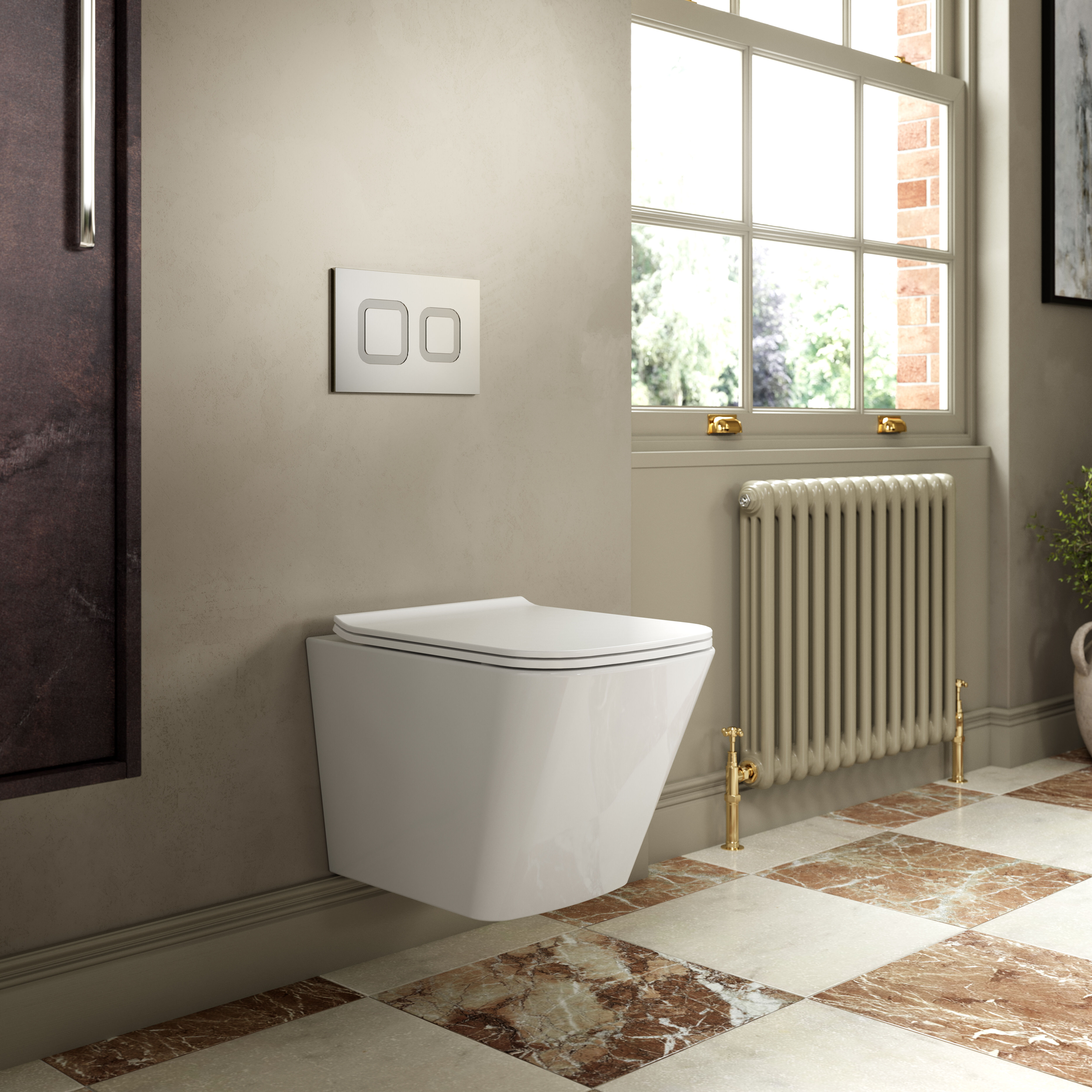 BC Designs Square Rimless W/H Pan & Soft Close Seat (Urea) - White