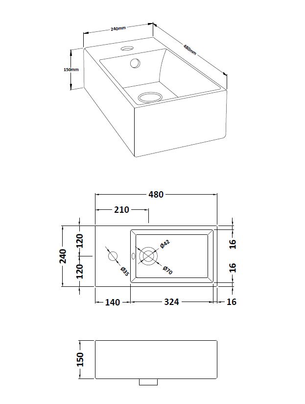Nuie Lux Compact Vessel Basin 480 x 240 x 150mm - White